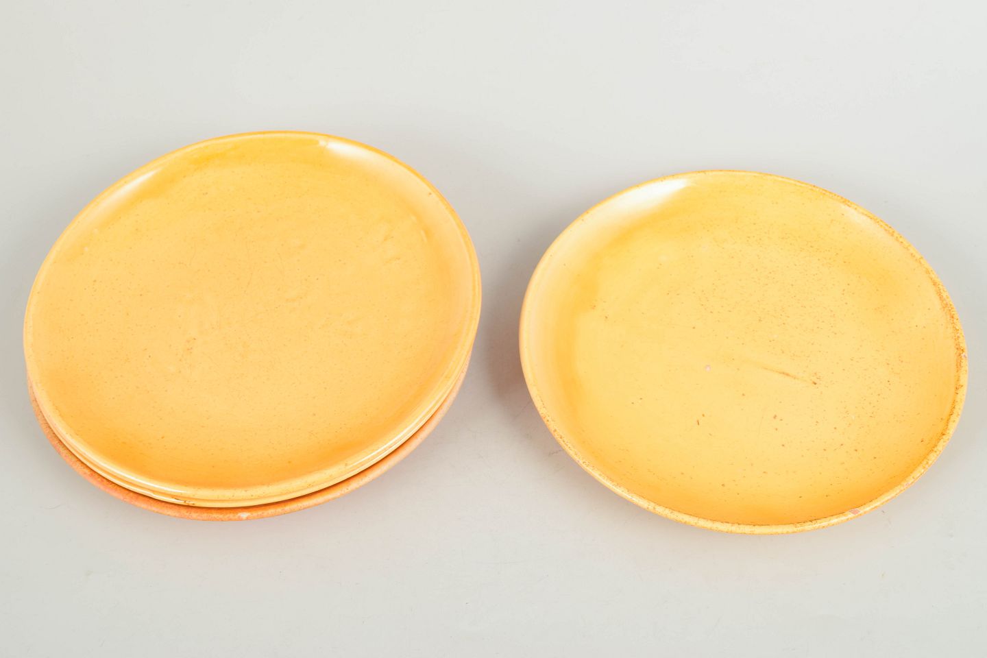 Kähler, sæt af fire tallerkener.Fire keramiske tallerkener med uranholdig glasur i varme gyldne toner, fremstillet hos Kähler i 1930’erne.