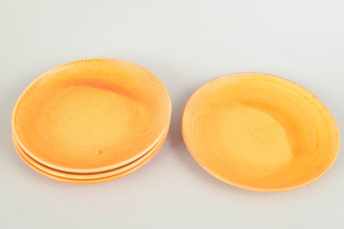 Kähler, sæt af fire tallerkener.Fire keramiske tallerkener med uranholdig glasur i varme gyldne toner, fremstillet hos Kähler i 1930’erne.