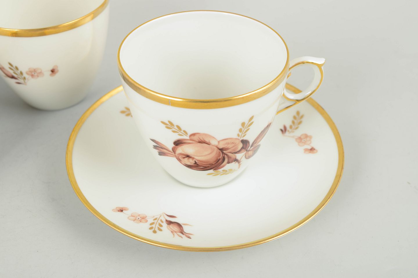 Royal Copenhagen brun rose, sæt af fire kaffekopper med underkopper.Beschreibung:
