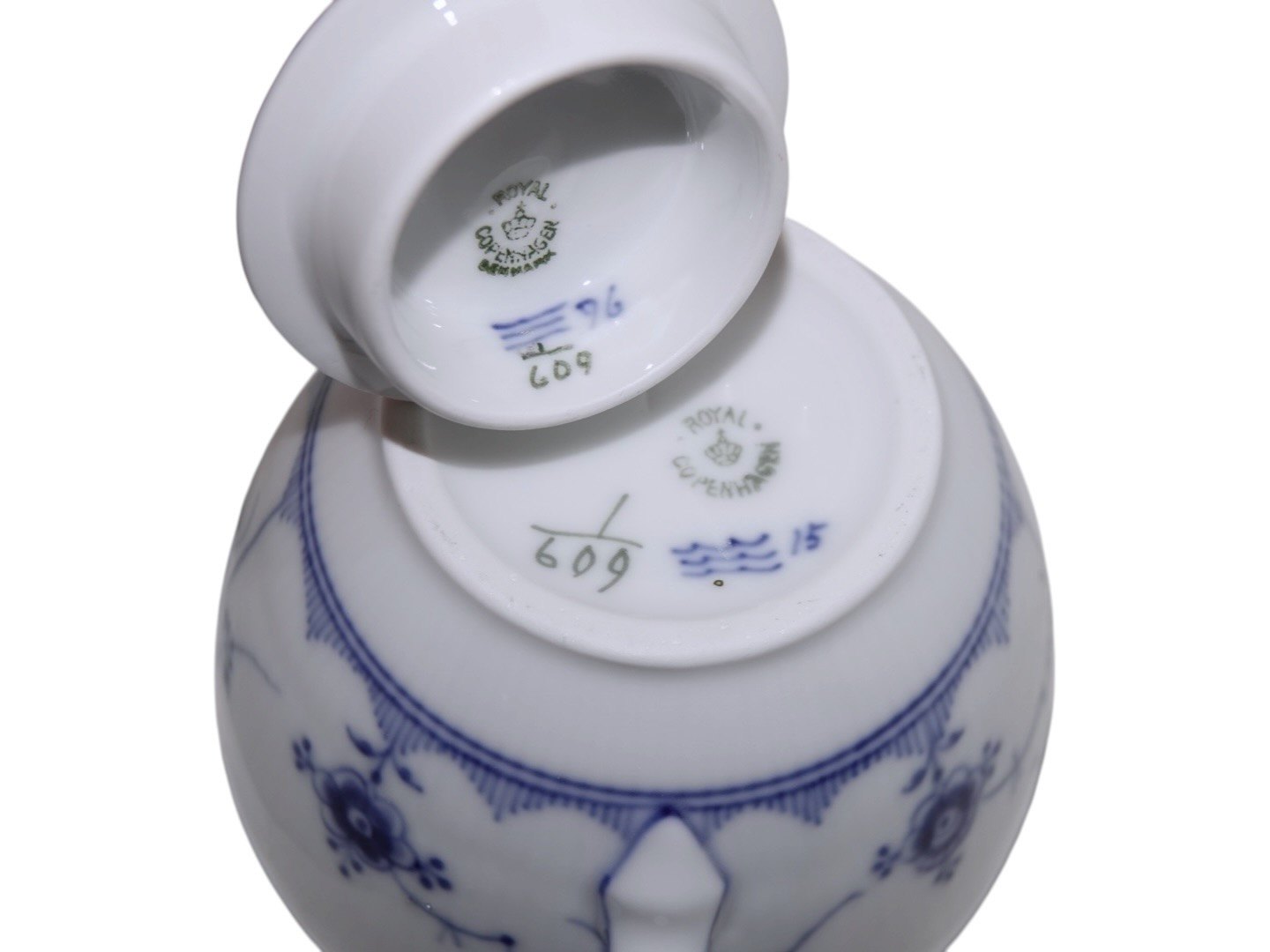 Royal Copenhagen Musselmalet Halvblonde, lille tekande.Fabriksmærket viser, at denne er produceret i mellem 1898 og 1923.
