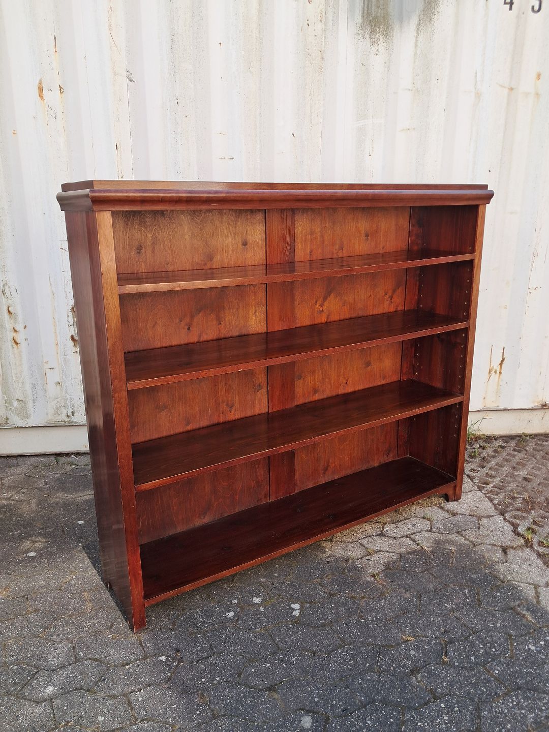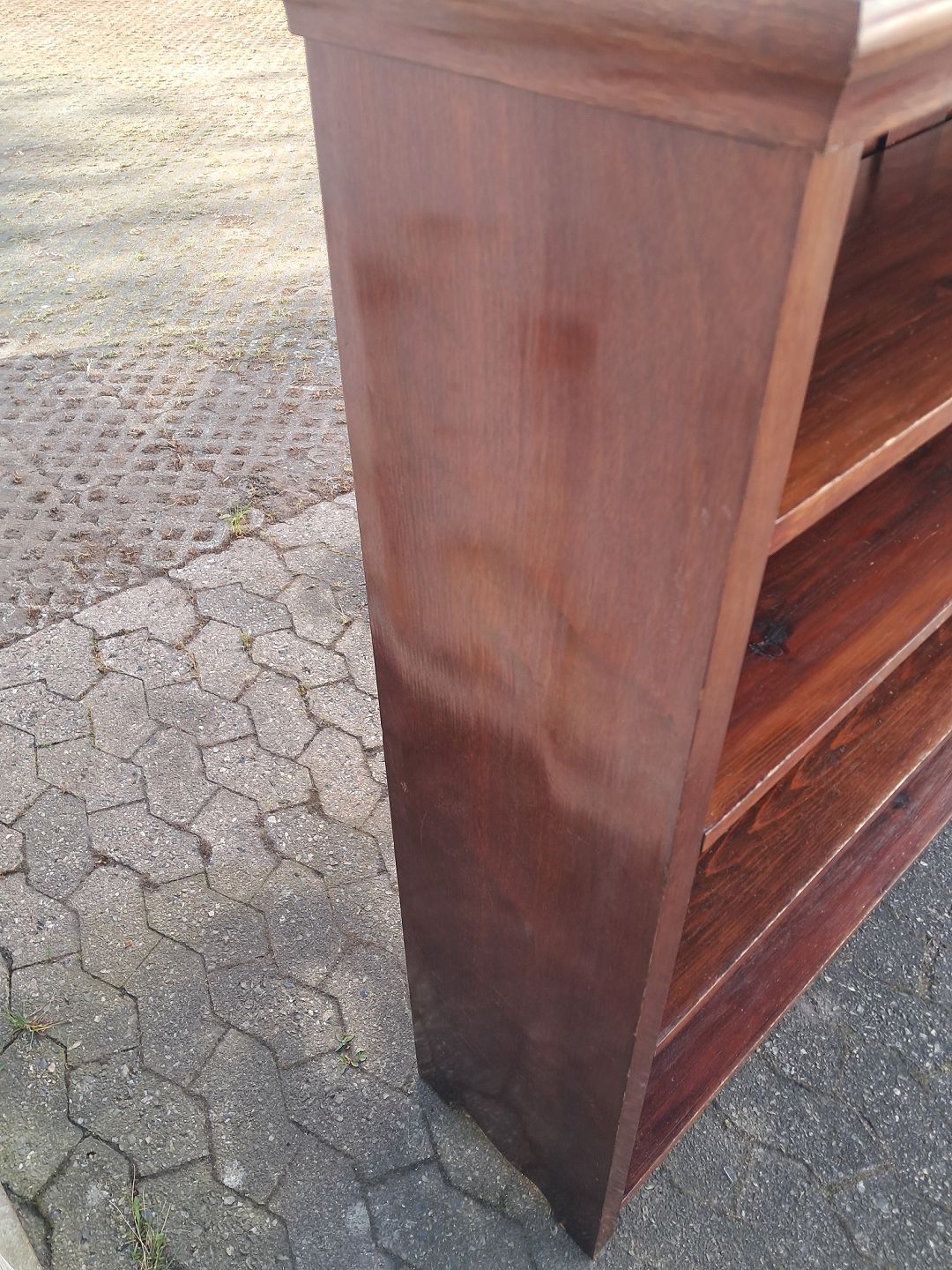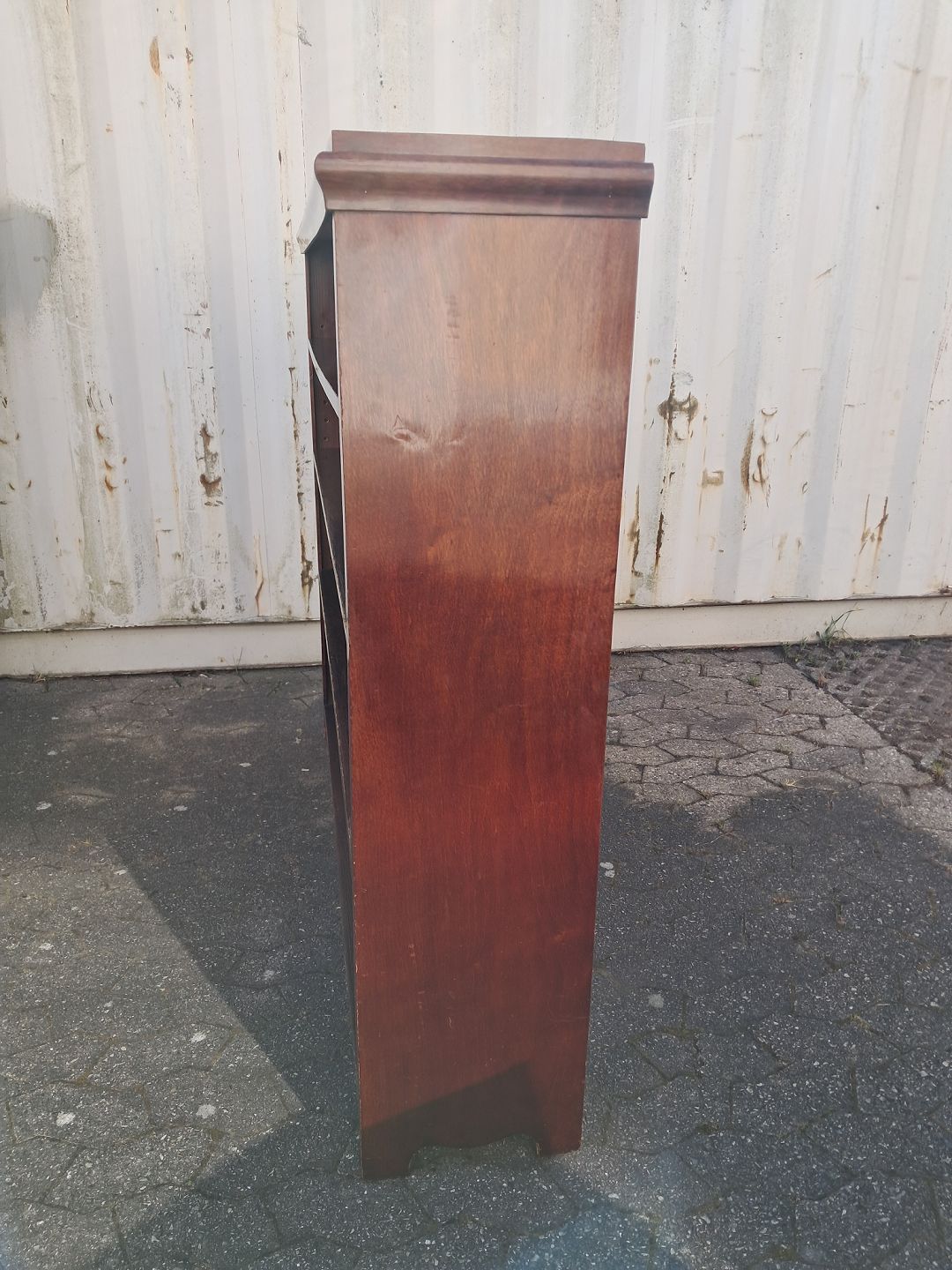 Reol i fineret mahogni, fra 1910erne.Den har brugsspor.