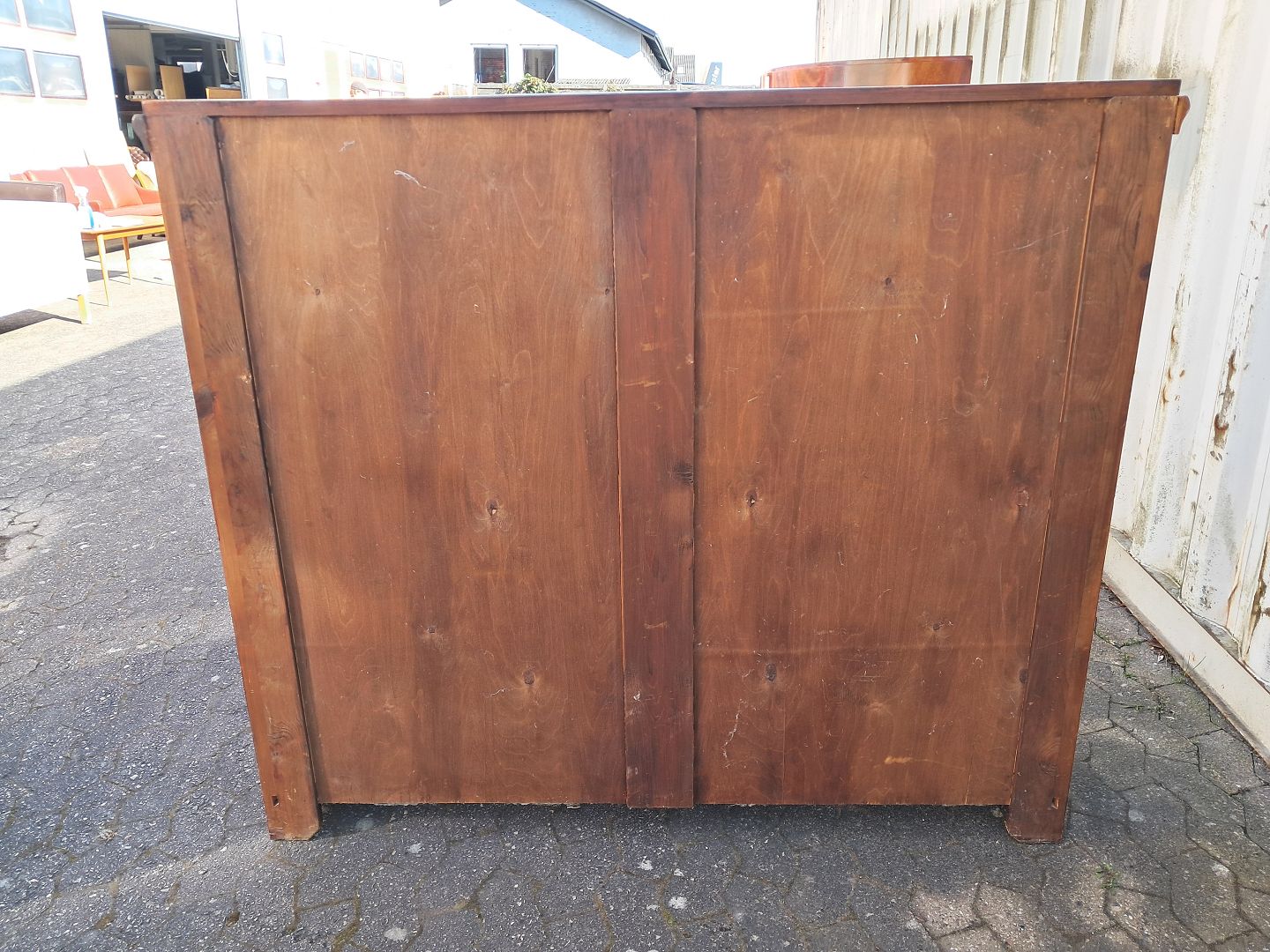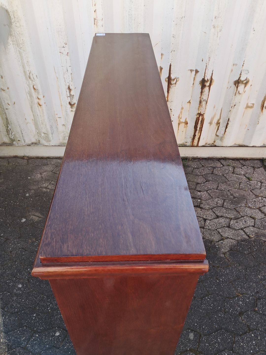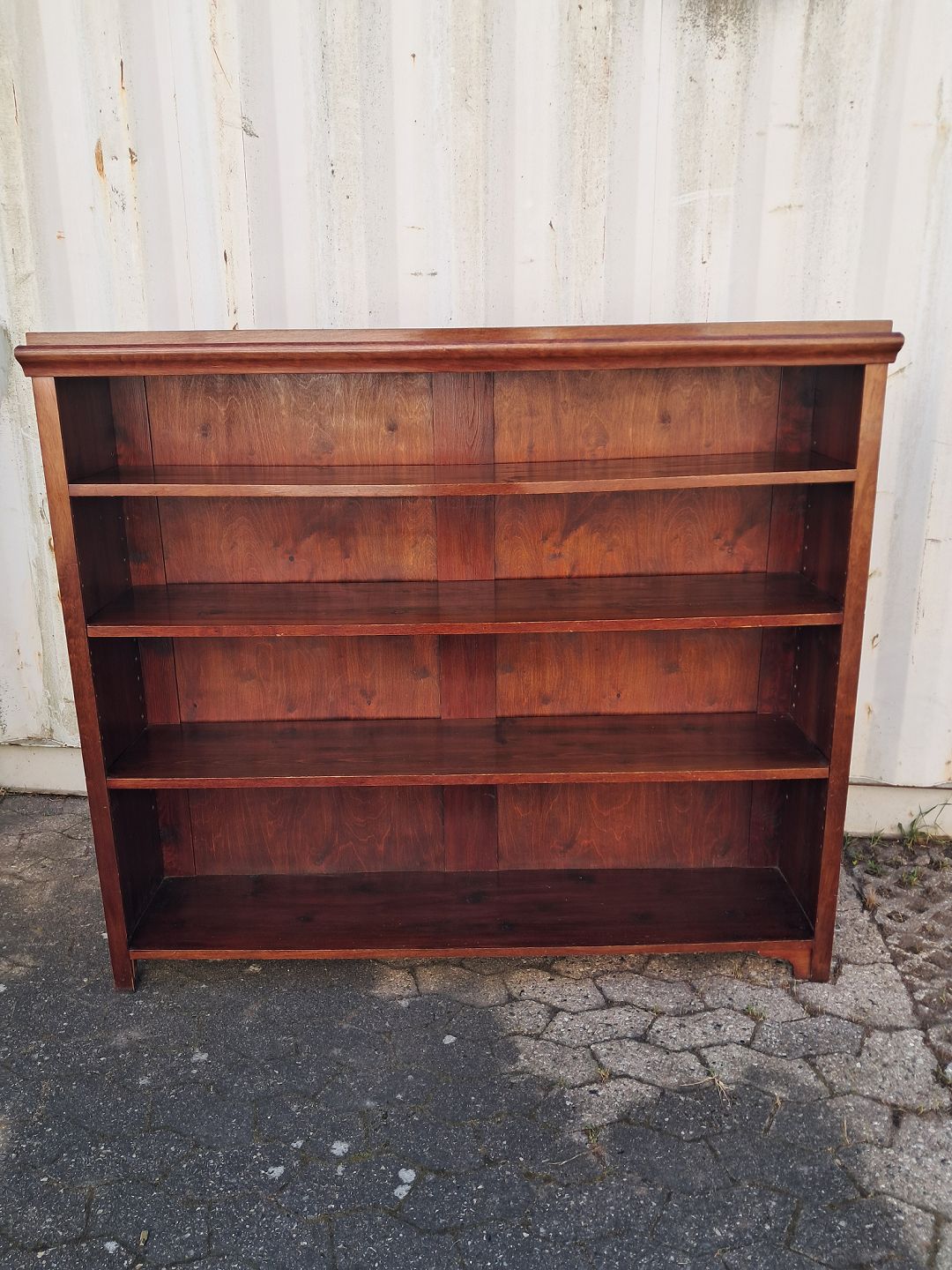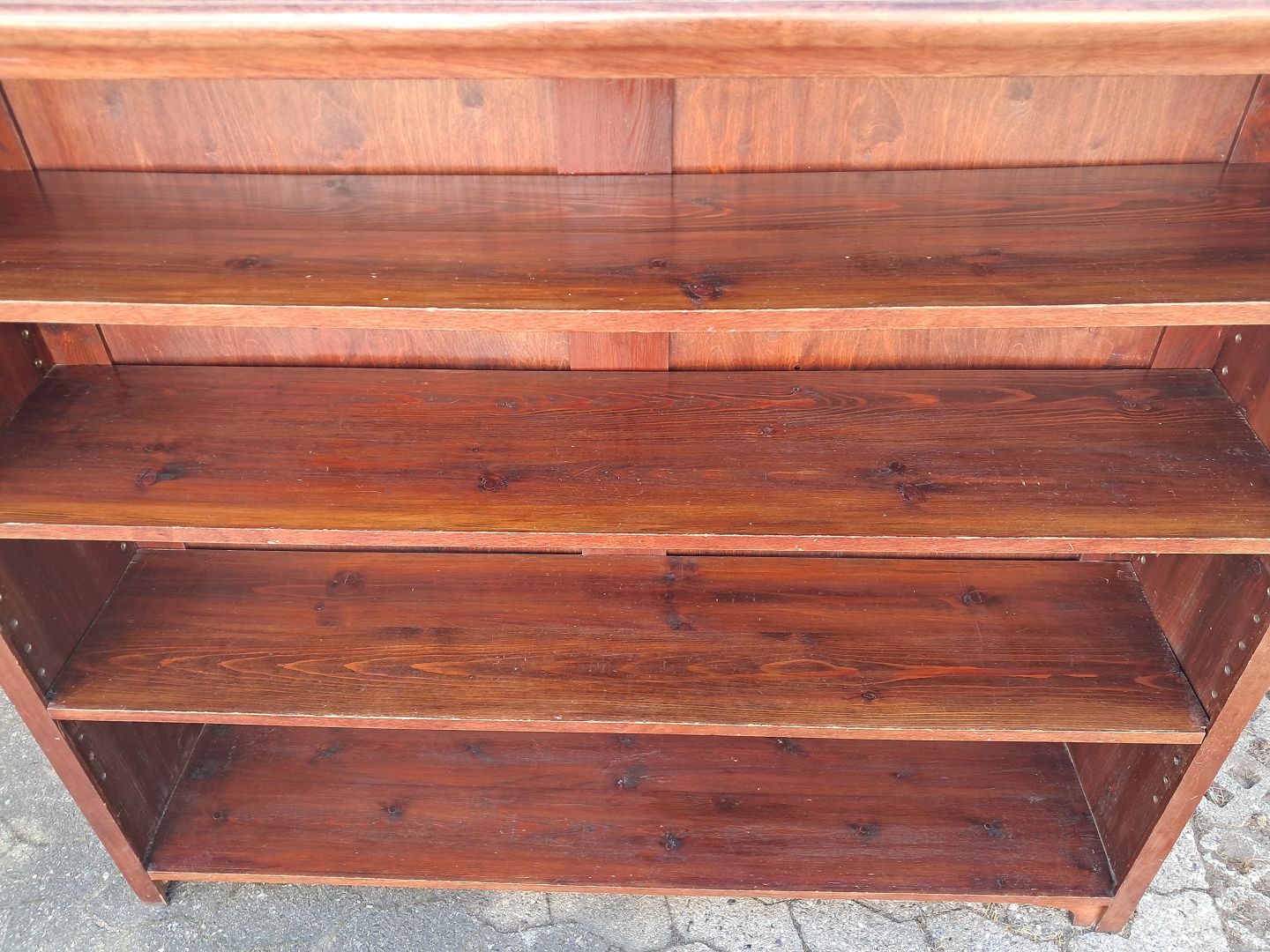 Reol i fineret mahogni, fra 1910erne.Den har brugsspor.