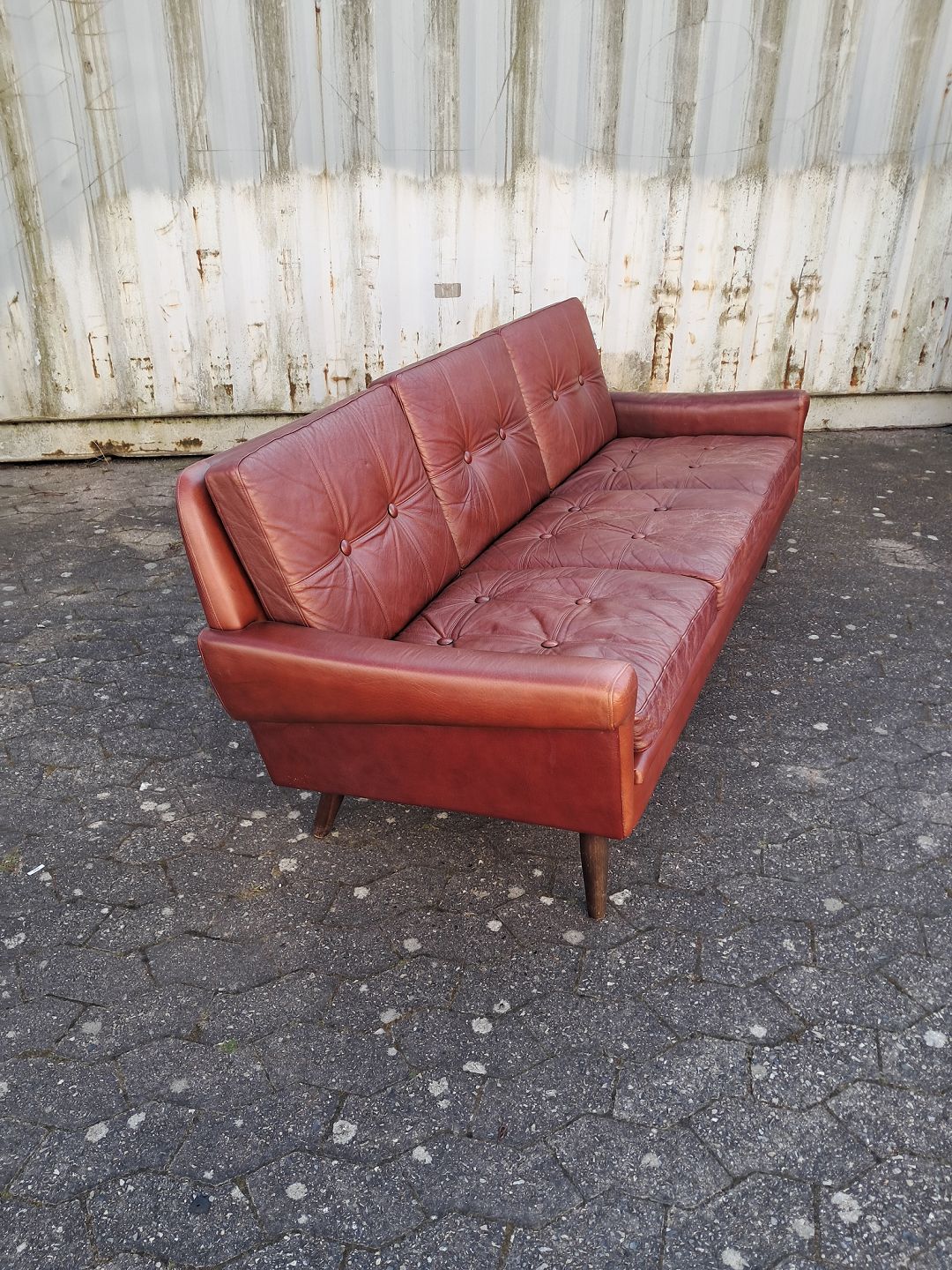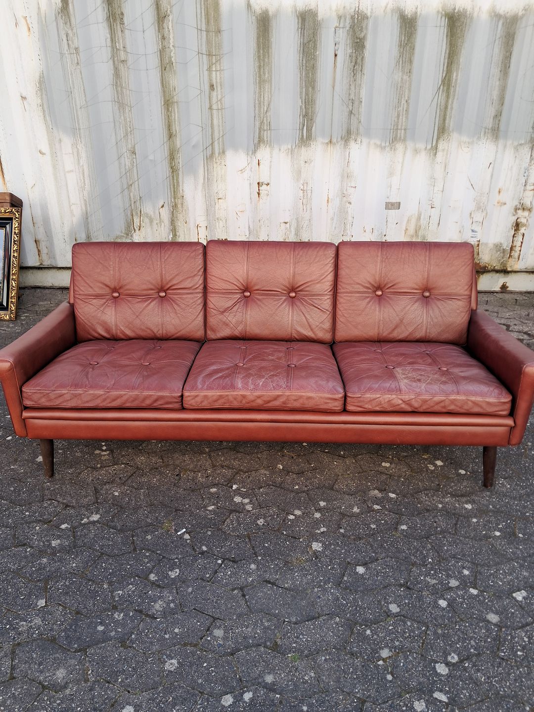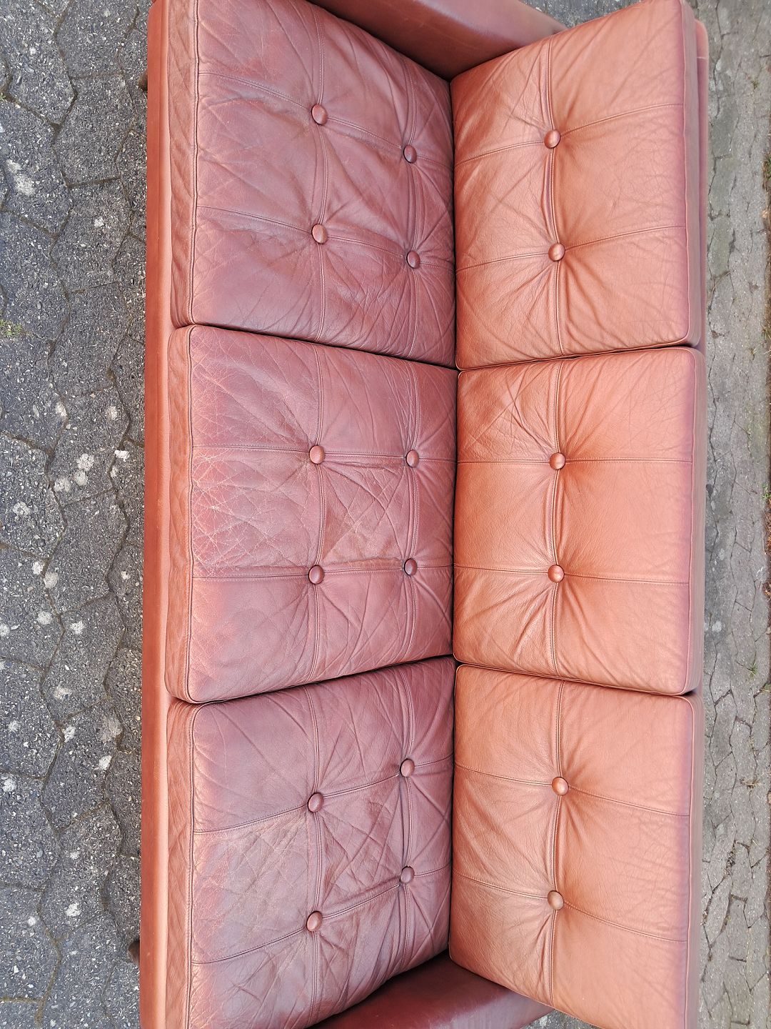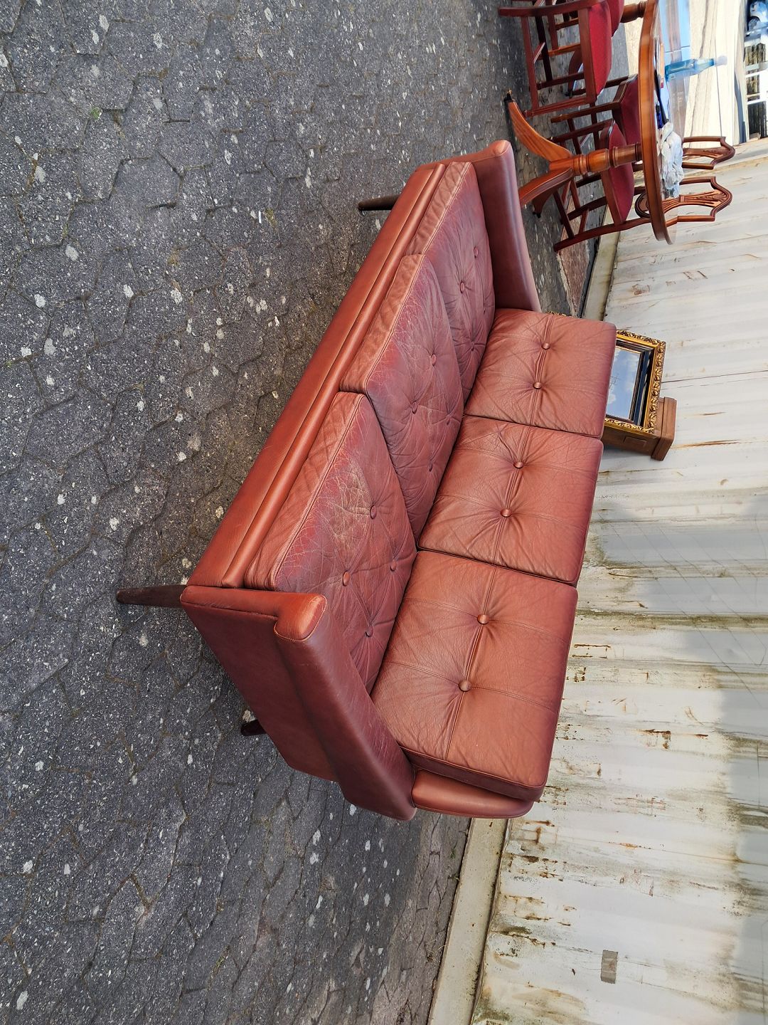 3 Personers lædersofa, fra 1970-80erne.Den har brugsspor.