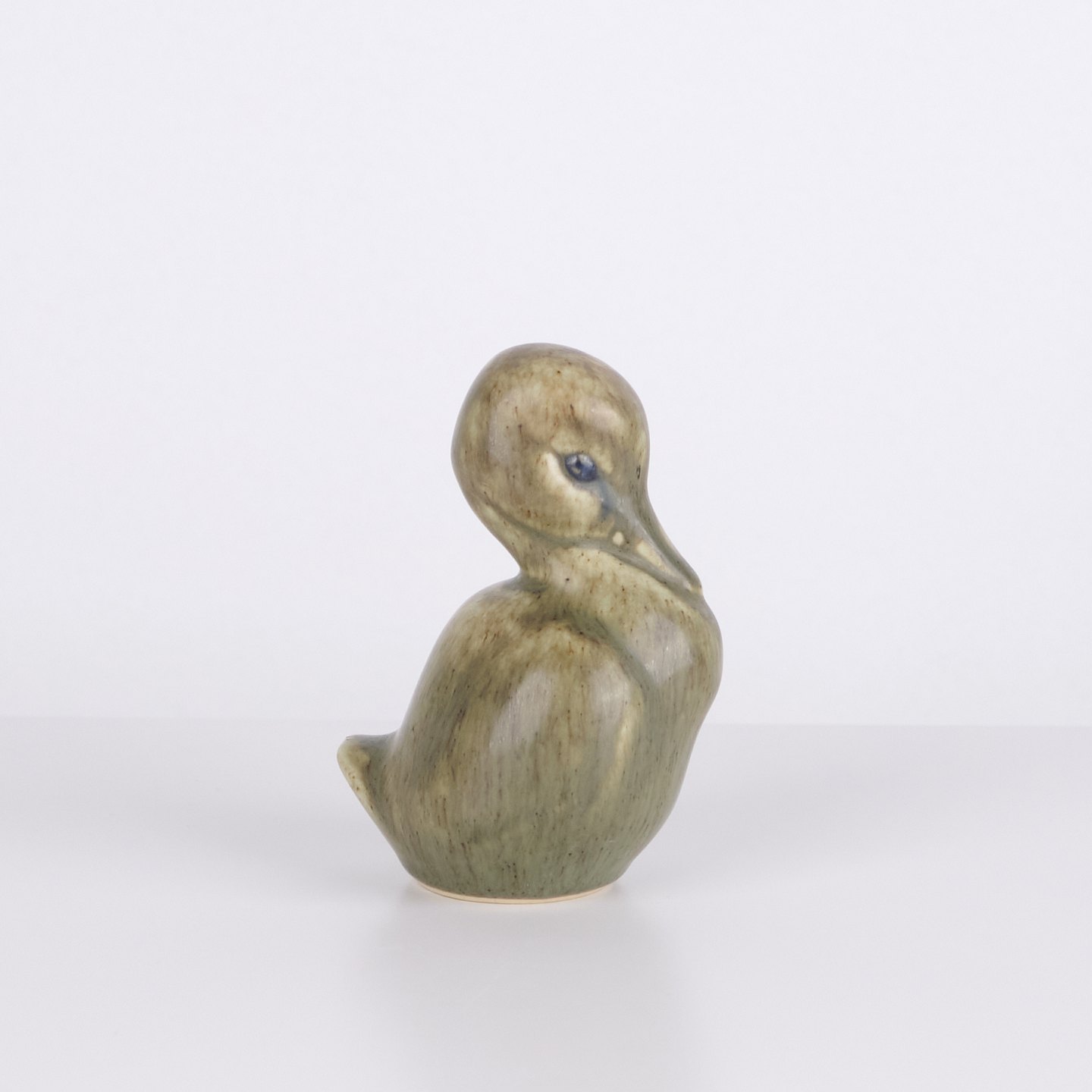 Entenfigur von Knud Basse aus glasierter Keramik. Die Figur wurde in den 1960er Jahren in Dänemark hergestellt. Knud Basse ist bekannt für keramische Tierfiguren mit Vogel- und Naturmotiven aus dieser Zeit.