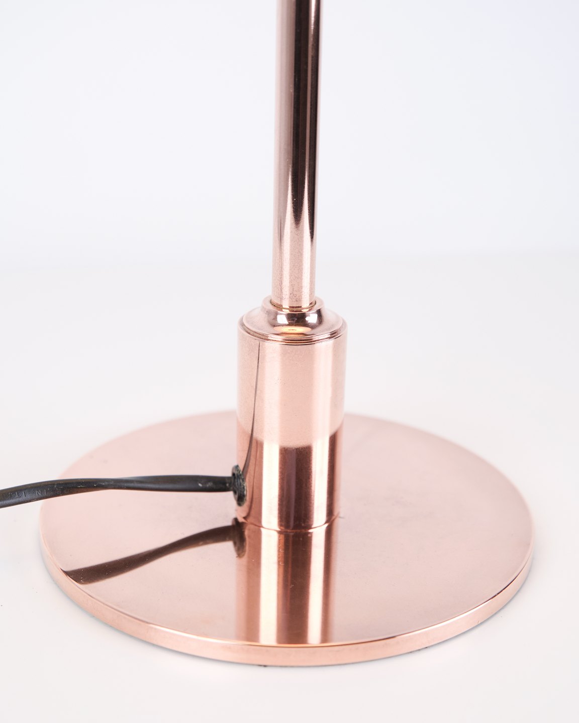 PH Tischlampe Modell PH 3½-2½ Limited Edition, entworfen von Poul Henningsen und hergestellt von Louis Poulsen. Die Lampe ist aus Kupfer gefertigt, mit oberem Schirm aus Kupfer sowie zwei unteren Schirmen aus weißem Opalglas. Bei dieser Ausführung ist nur der obere Kupferschirm enthalten. Das Modell wurde nur für einen begrenzten Zeitraum im Jahr 2015 produziert und verkauft und ist daher besonders begehrt bei Sammlern von PH Lampen und dänischem Lichtdesign.