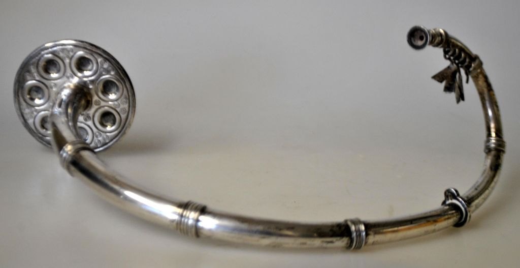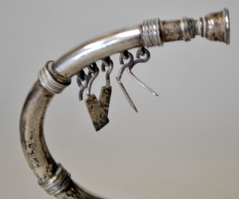 Hingelberg-Lure aus Sterlingsilber, 20. Jahrhundert. Aarhus, Dänemark. Mit bronzezeitlichem Ornament. Länge: 20 cm. Gestempelt: Hingelberg Sterling Denmark 925 S. Gewicht: 81 Gramm.Hinweis: Zwei Anhänger fehlen.