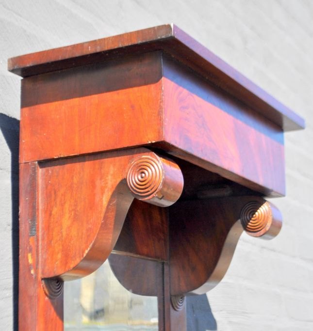 Spiegelkonsole aus Mahagoni, 19. Jahrhundert. Mit geschnitzten Voluten. Höhe: 86 cm. Breite: 41,5 cm. Tiefe: 20,5 cm.Bestellnummer: 29159