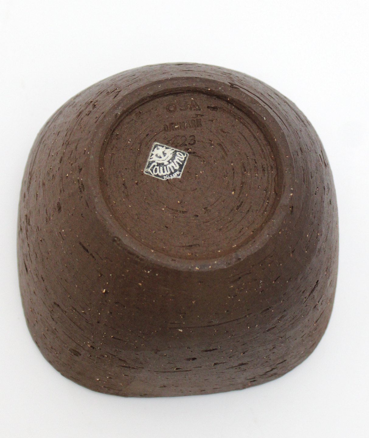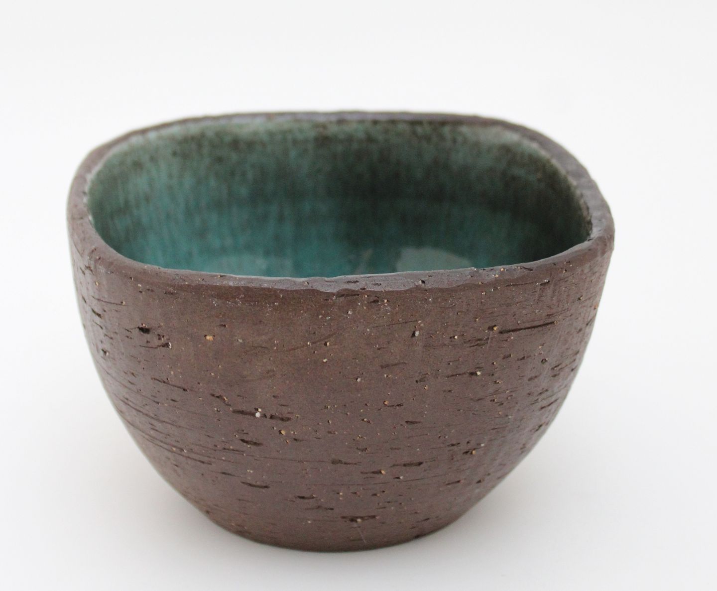 Flot og yderst sjælden firkantet skål nr. 423 i grønmeleret glasur indvendig og rå keramik yderside fra OSA keramik. OSA keramik var et kortvarigt samarbejde mellem Aase Feilberg, Chr. Frederiksen og Gutte Eriksen. Værkstedsfællesskabet varede fra 1941-1942. Skålen er i flot stand. Højde 9 cm. 14 x 14 cm. Pris: 2500 kr.