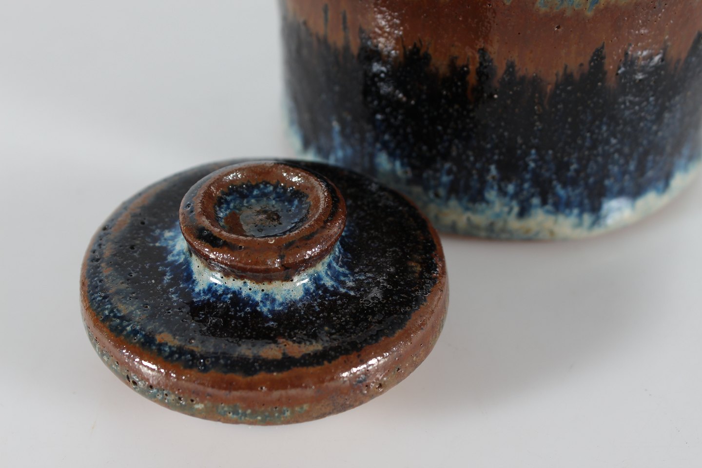 Gunver Bilde (1931-2018)Lågkrukke af stentøj i rustik stil