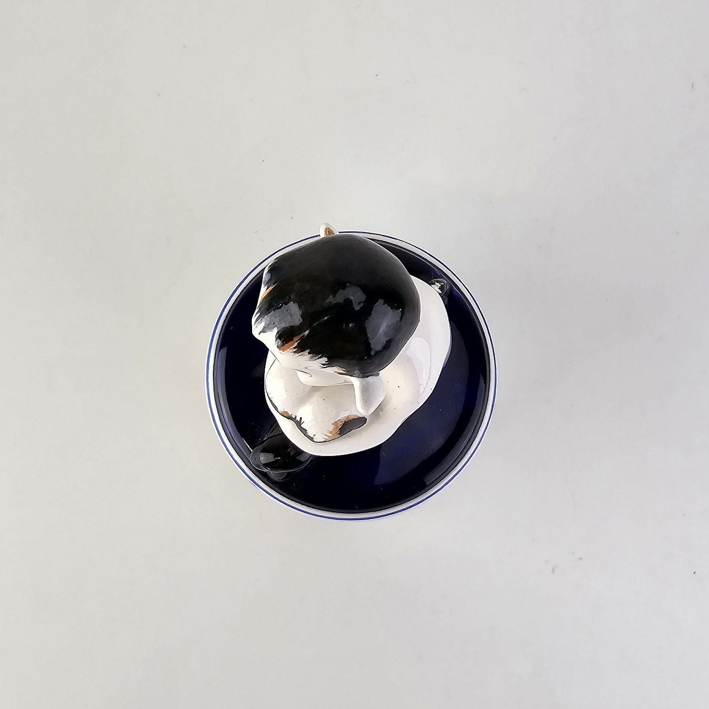 Figur i fajance med motiv af en faun på en opsats med malet blomstermotivNr. 917/786
