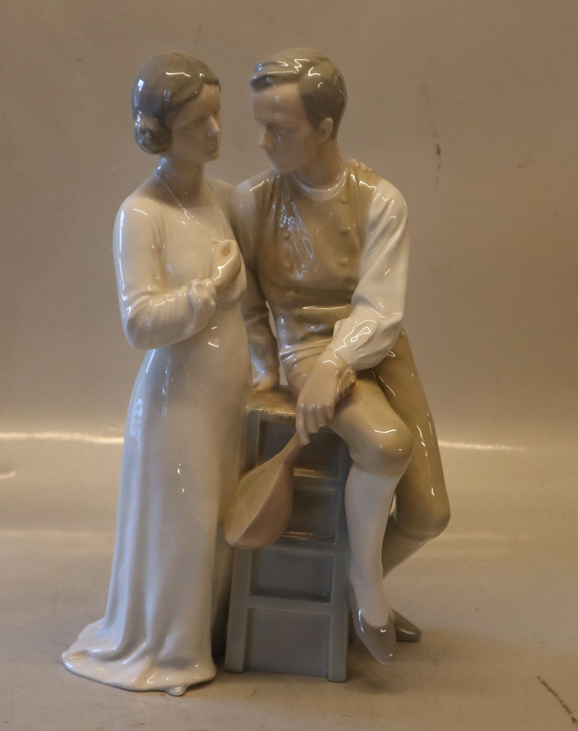 B&G 1618 Siddende mand med mandolin og stående kvinde 28.5 cm Bing & Grøndahl