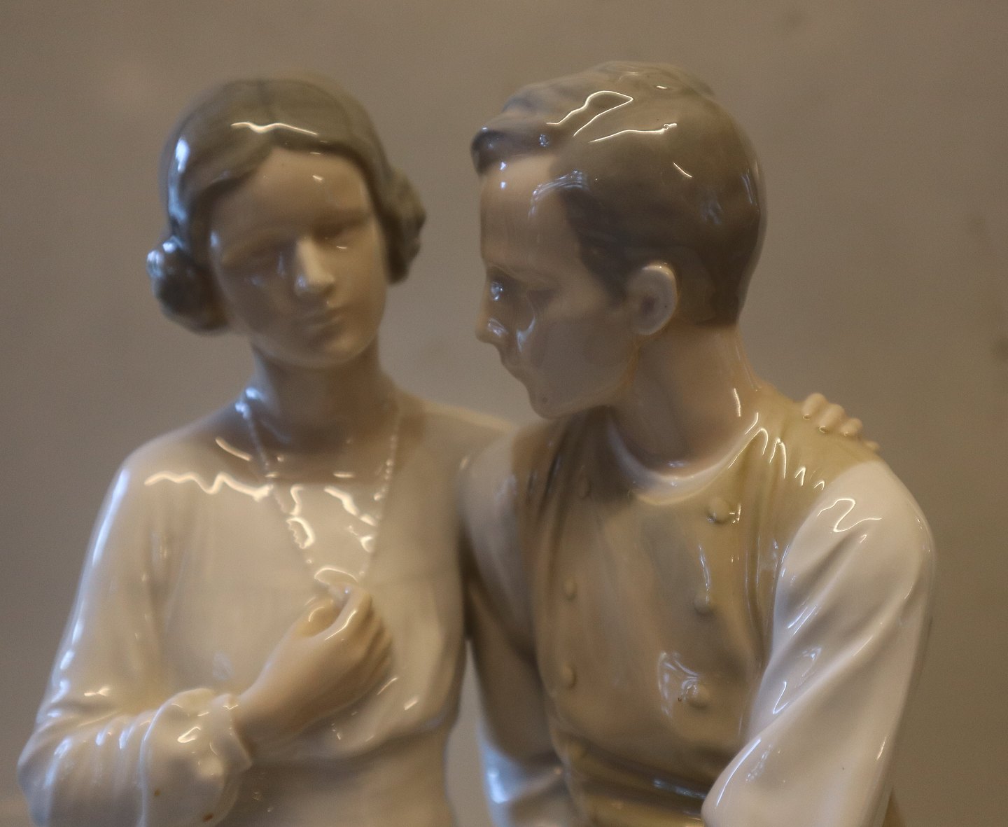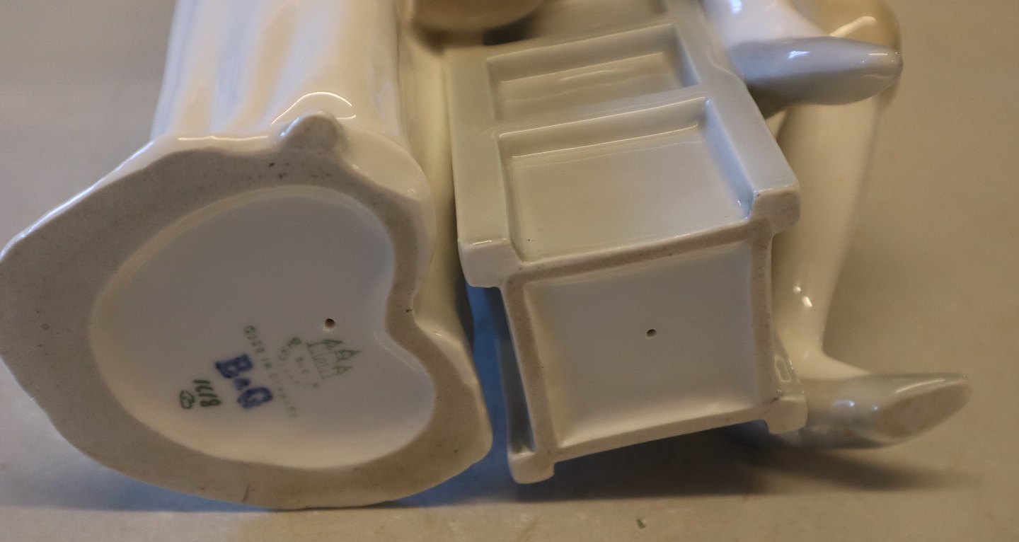 B&G 1618 Siddende mand med mandolin og stående kvinde 28.5 cm Bing & Grøndahl I fin og hel stand. Strengeinstrumentet kan også være en lut. Stilen på figuren og perioden peger på Ingeborg Plockross Irminger som designer Händler