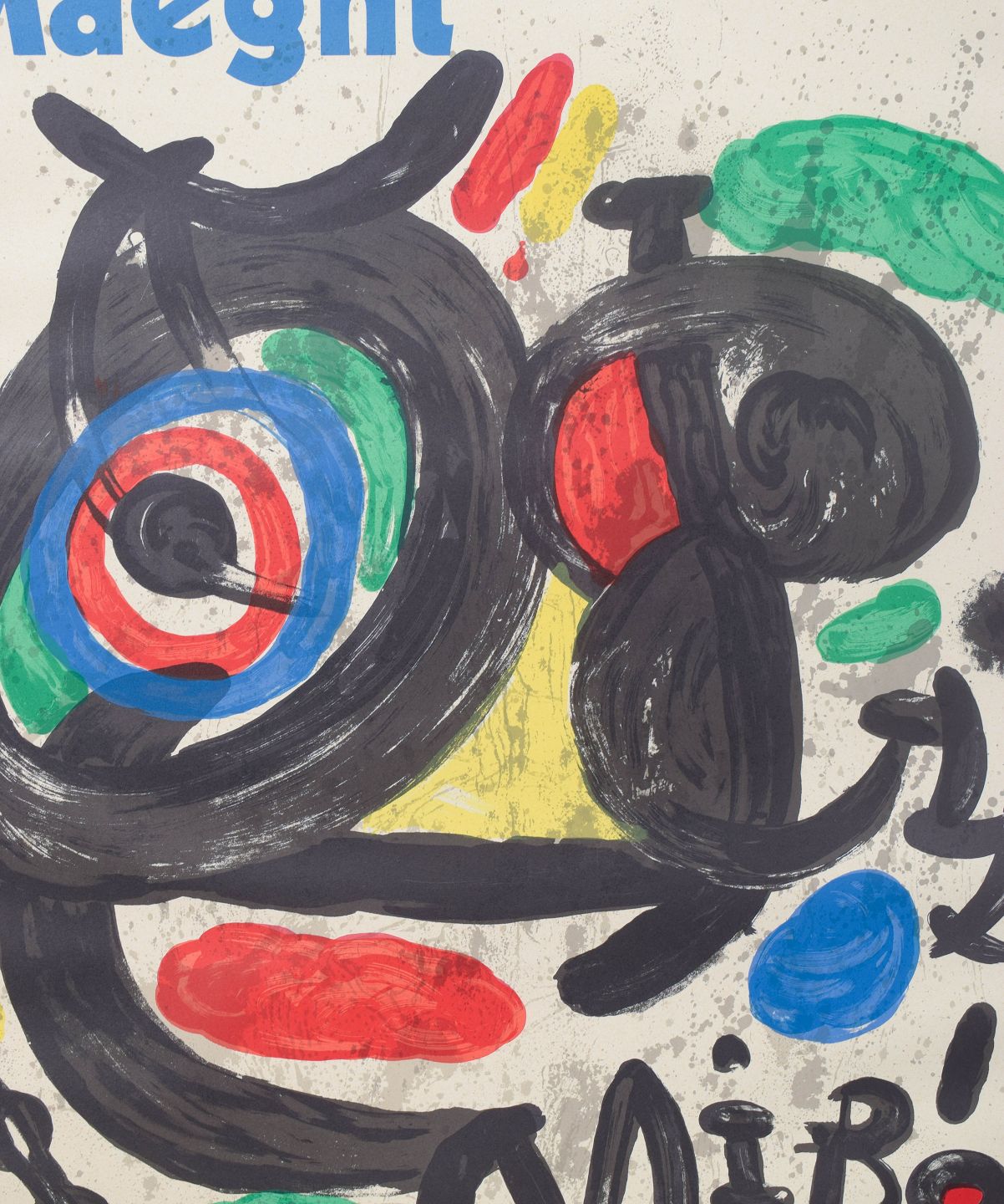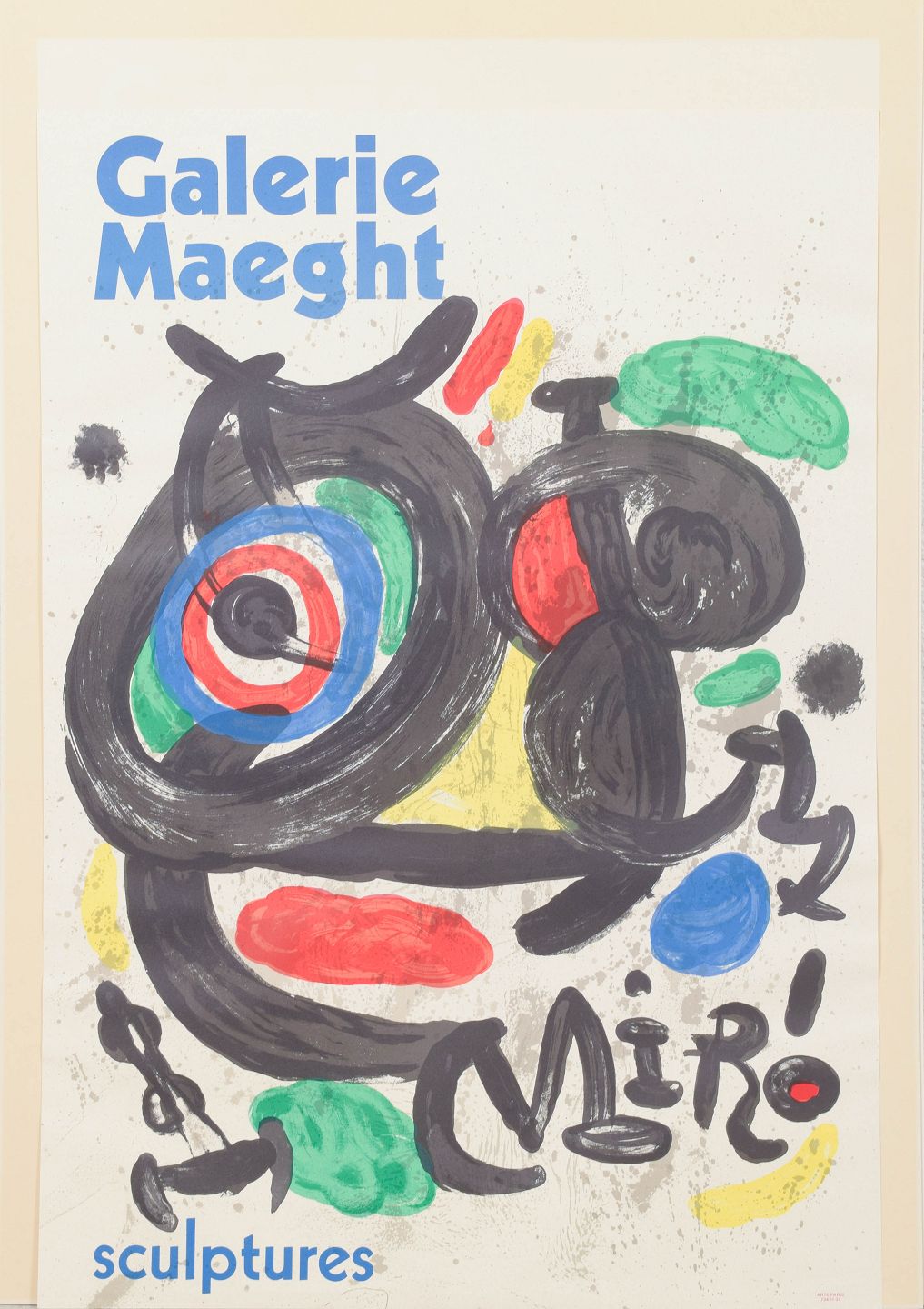 Farverigt og ekspressivt motiv med organiske former og symbolske figurer, udført som litografisk plakat for Galerie Maeght, med karakteristisk spontan streg og stærke kontraster.