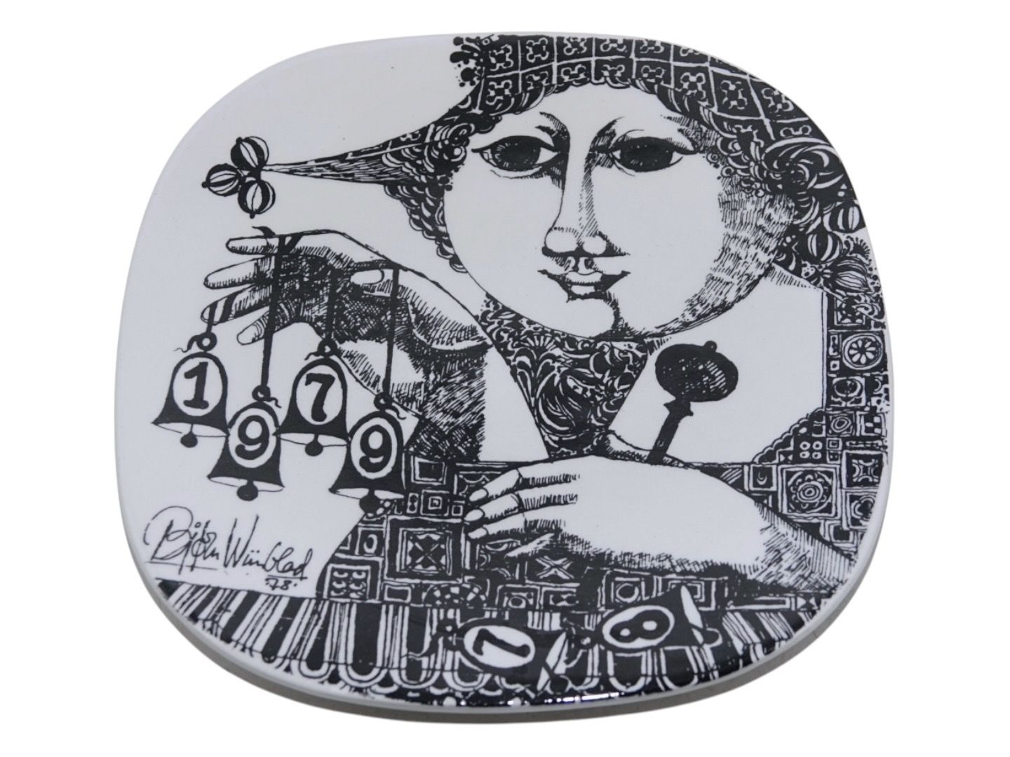 Sort Bjørn Wiinblad årsplatte 1978 - 1979.Produceret hos Nymølle Keramik.