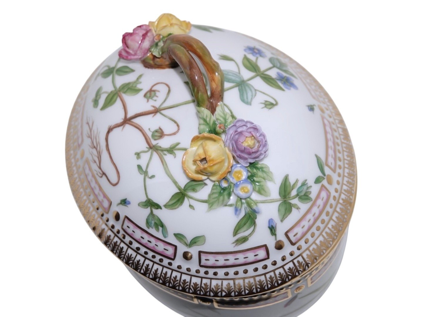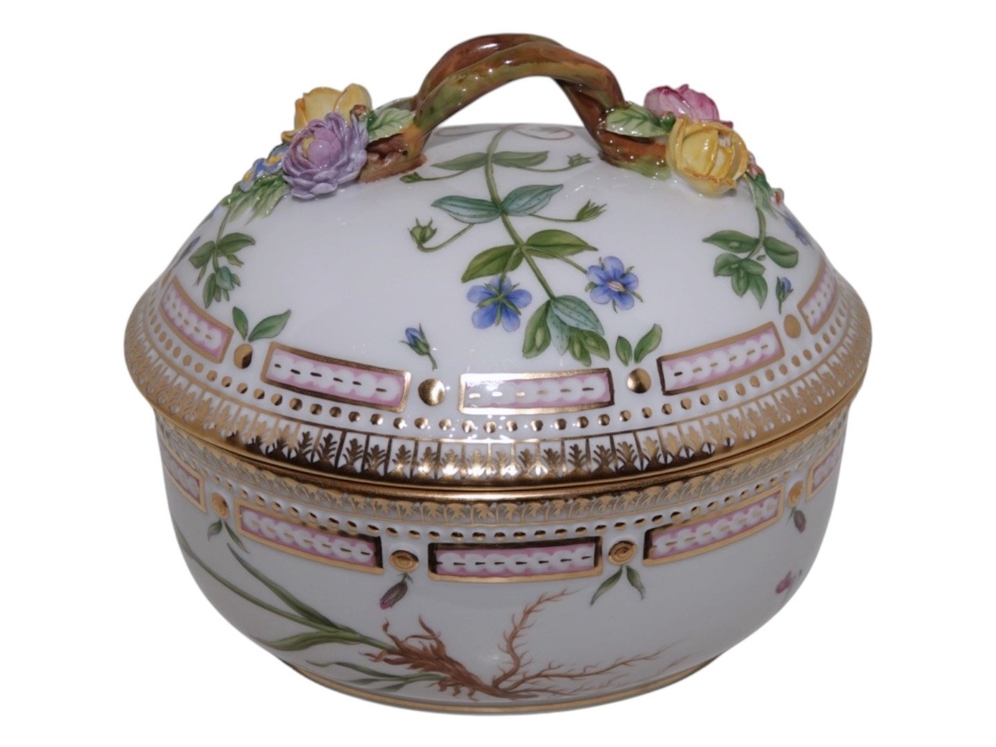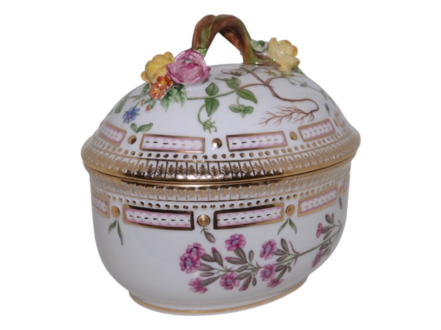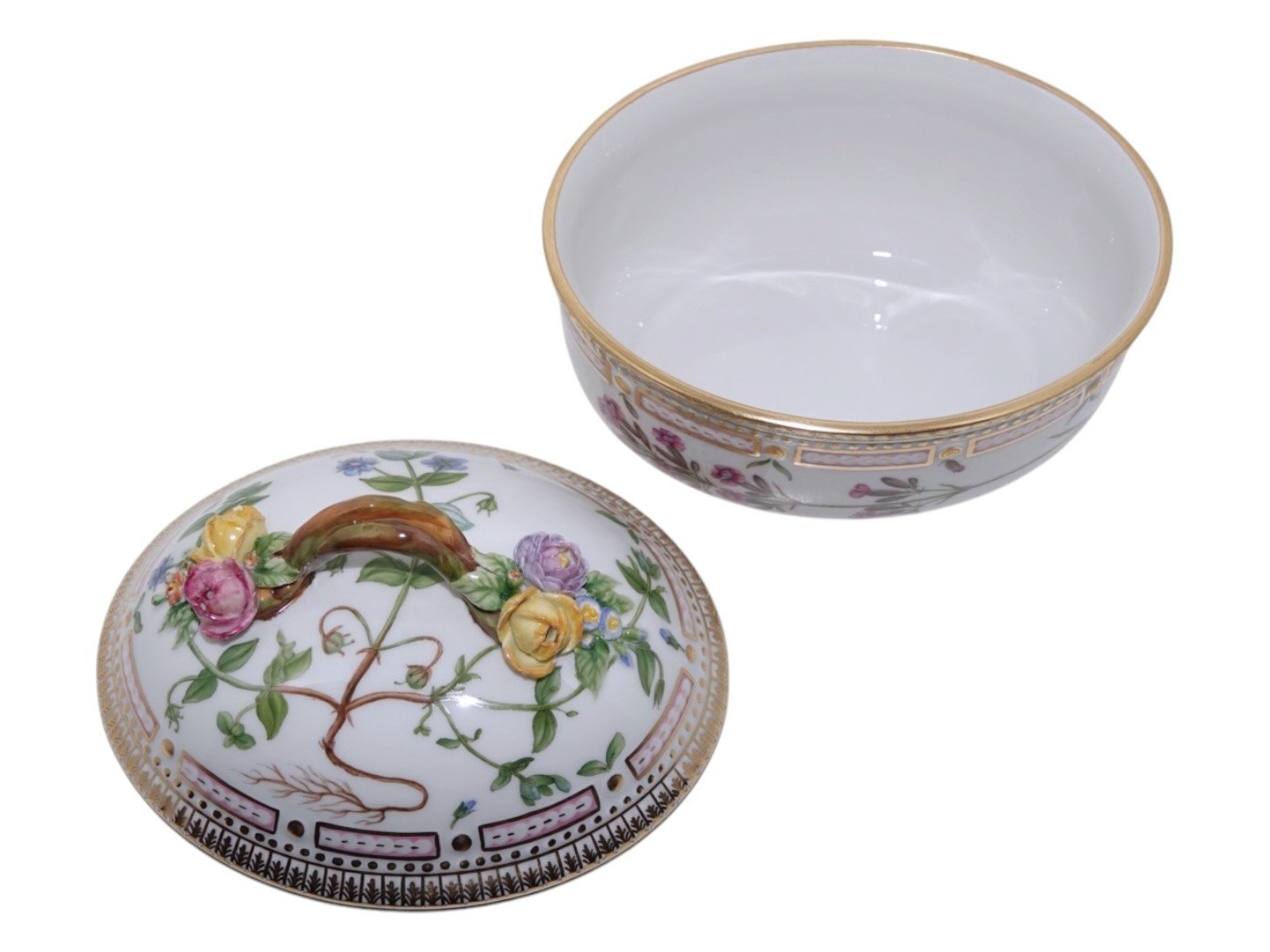 Royal Copenhagen Flora Danica, større skål med låg kaldet en sukkerdåse.Dekorationsnummer 20/3582.