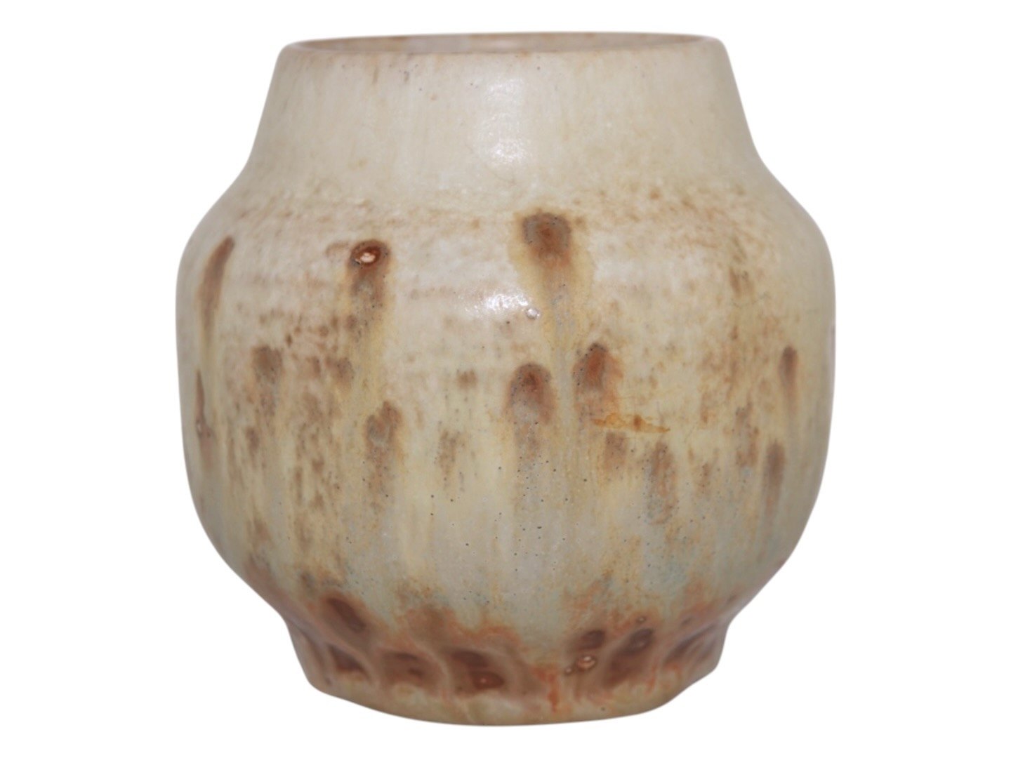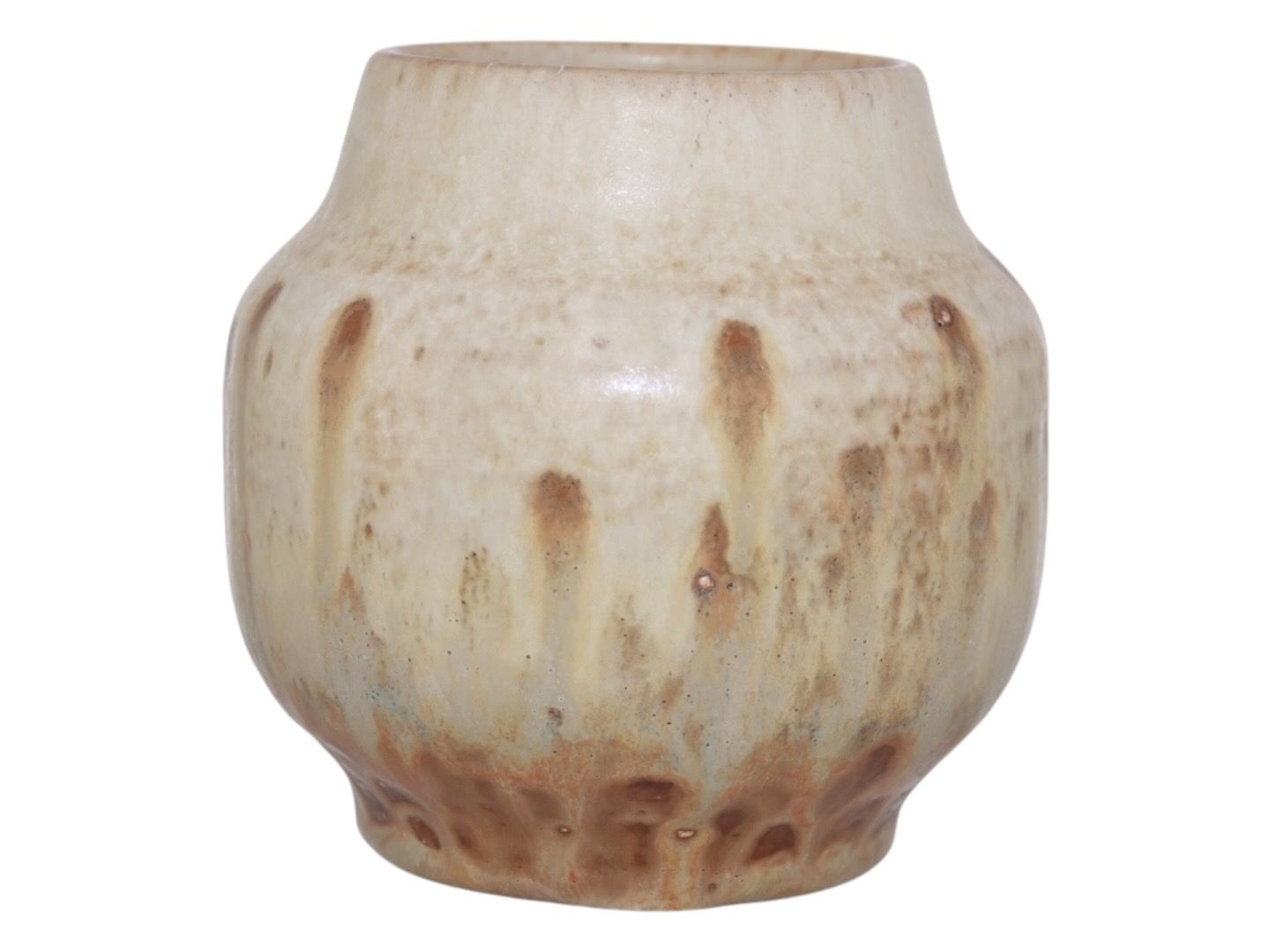 Bing & Grøndahl keramikvase, signeret AW for Hans Ancher Wolfsen (1870–1924). Wolfsen overtog Søholm i 1887 sammen med sin bror og spillede en væsentlig rolle i fabrikkens kunstneriske og håndværksmæssige udvikling.Designnummer 2556.