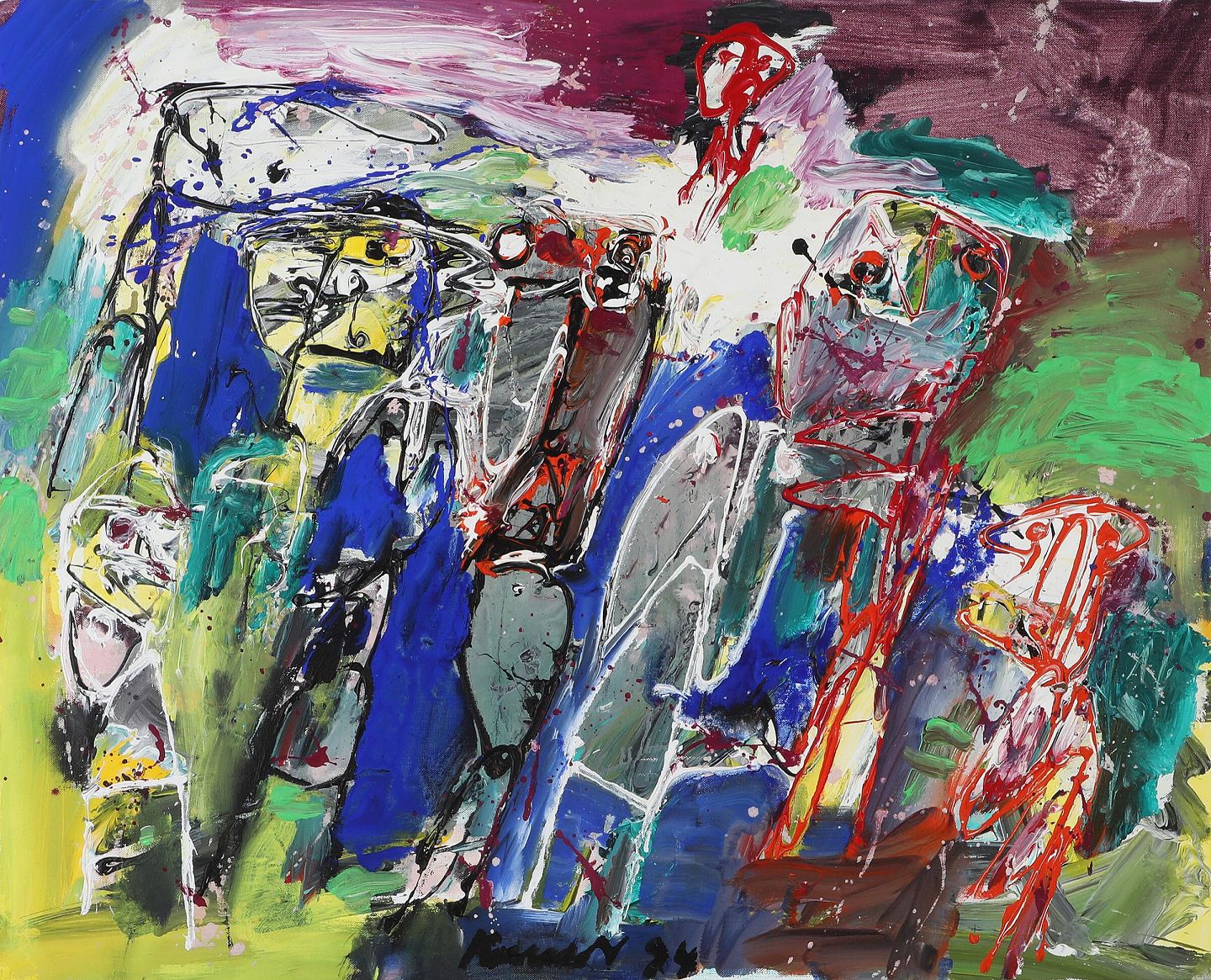 Cobra komposition, olie maleri på lærred i sølv svæveramme.