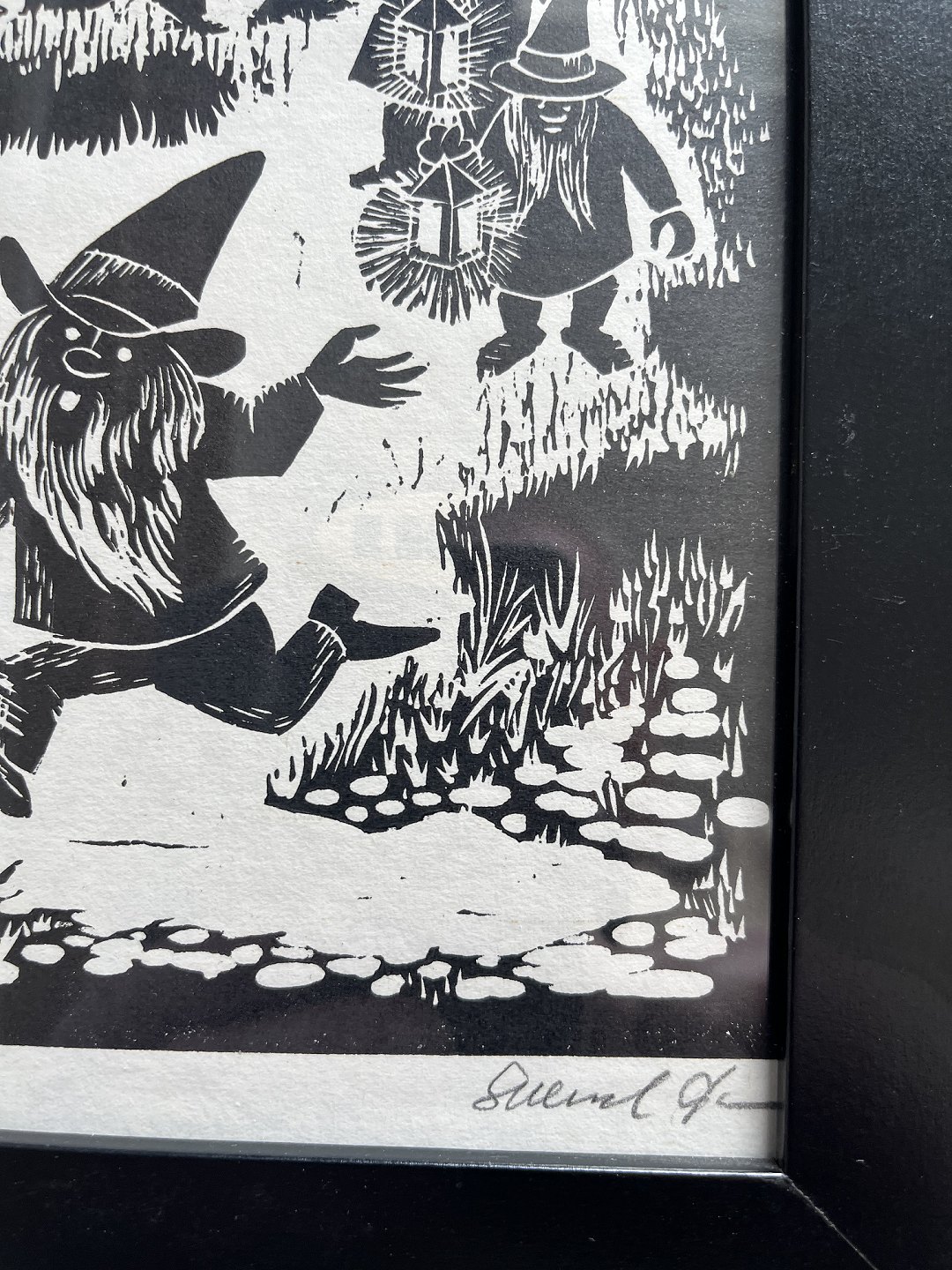 Svend P. Jørgensen (1918-75):2 kompositioner med Trolde, nisser, træer, dyr mm.
