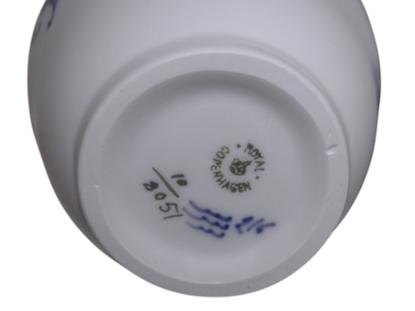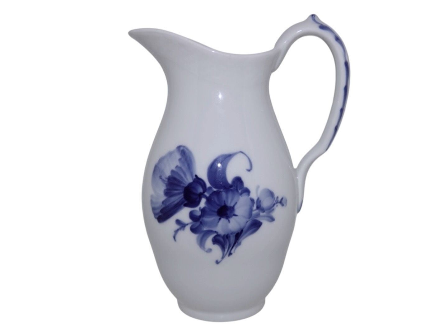 Royal Copenhagen Blå Blomst Flettet, stor mælkekande.Af fabriksmærket kan det udledes, at denne er produceret i mellem 1898 og 1923.