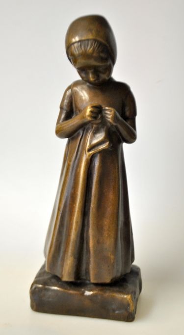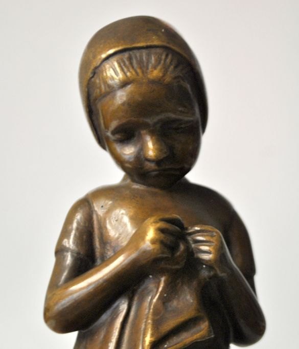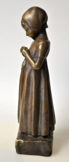 Karsten, Michaela (1886 - 1943) Dänemark: Ein kleines Mädchen. Bronze. Unsigniert. Höhe: 28 cm.Gefunden mithilfe von KI.