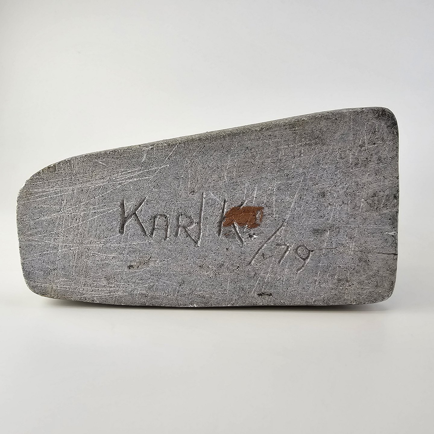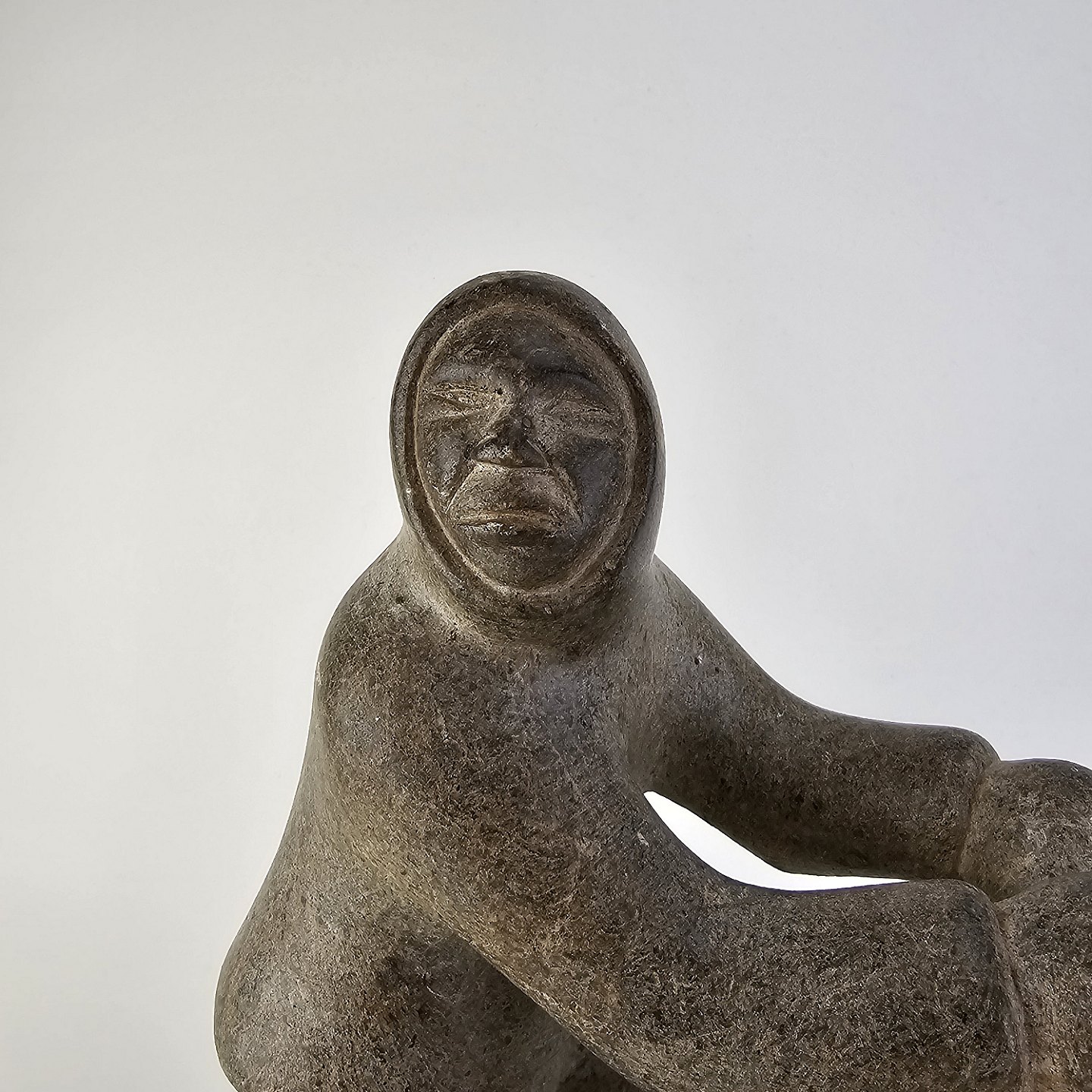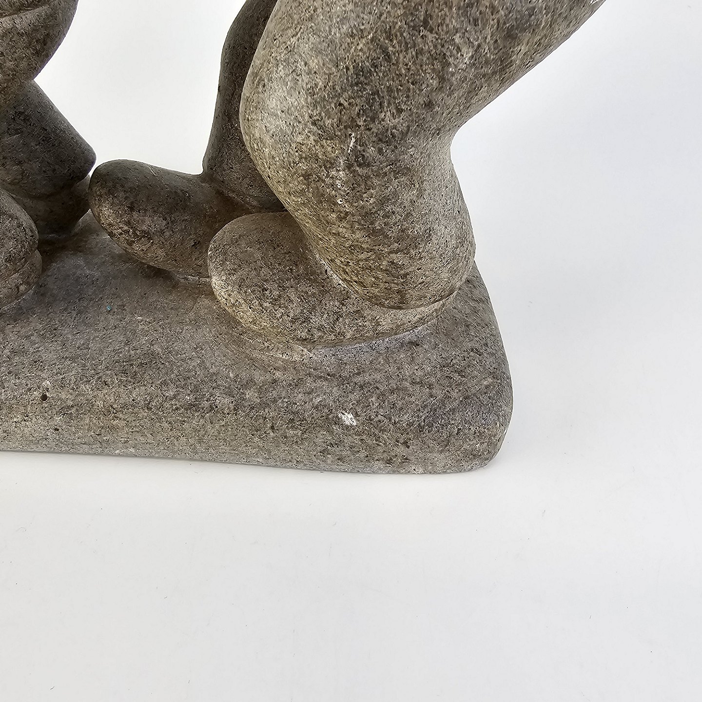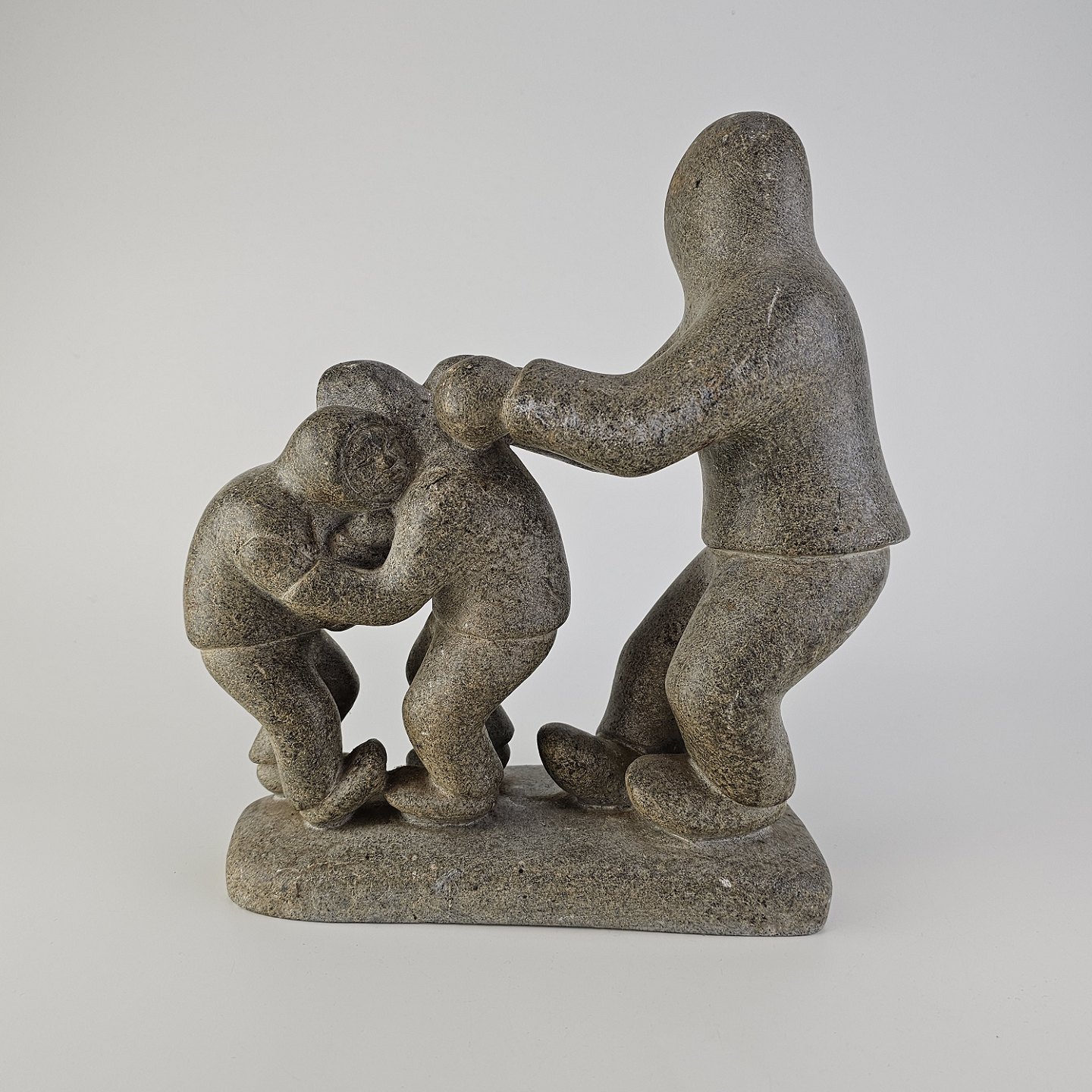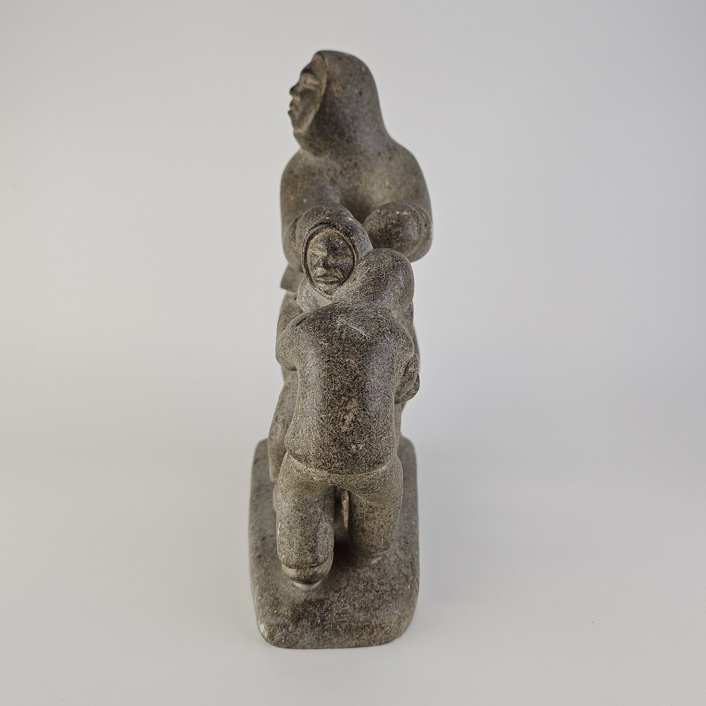 Grøndlandsk figur i fedtsten med motiv af en voksen og to børnFormgiver Karl Kristoffersen
