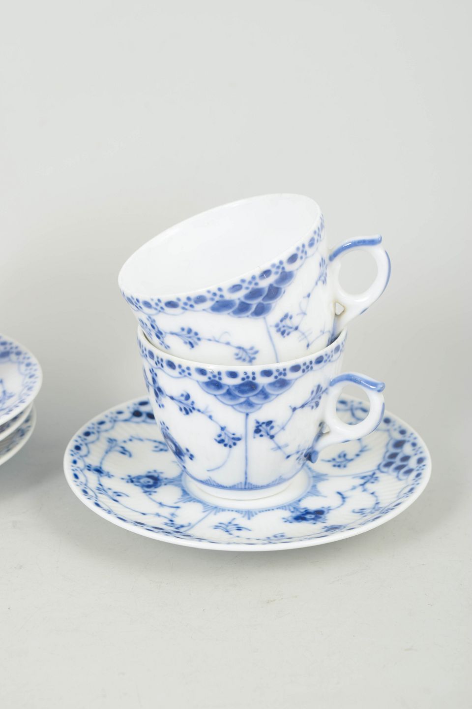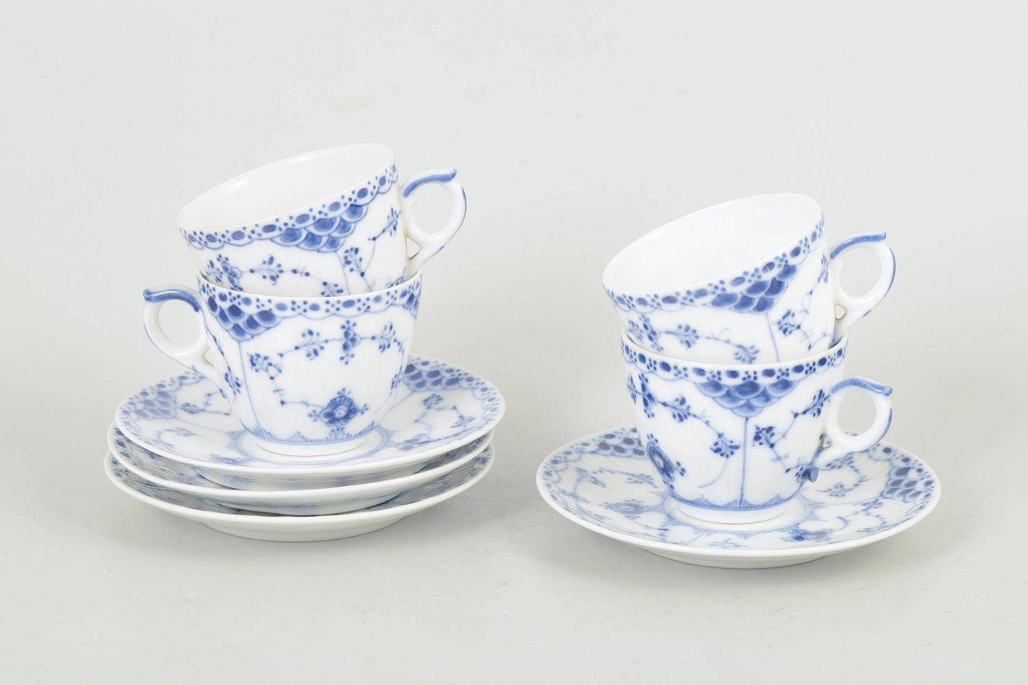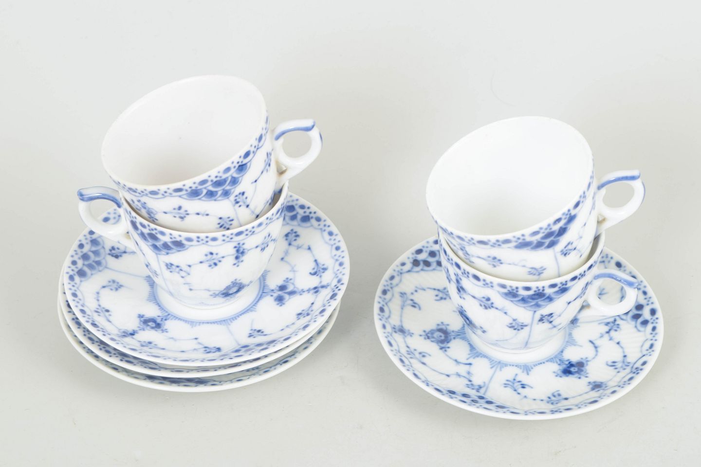 Royal Copenhagen Musselmalet Halvblonde, sæt af fire kaffekopper med underkopper.Beschreibung: