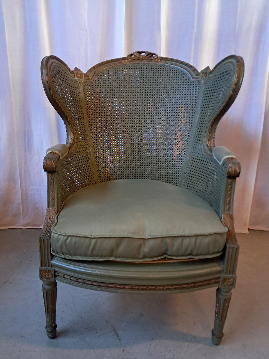 Malet rokokostol med rørflet, fra 1950erbne.Den har brugsspor.