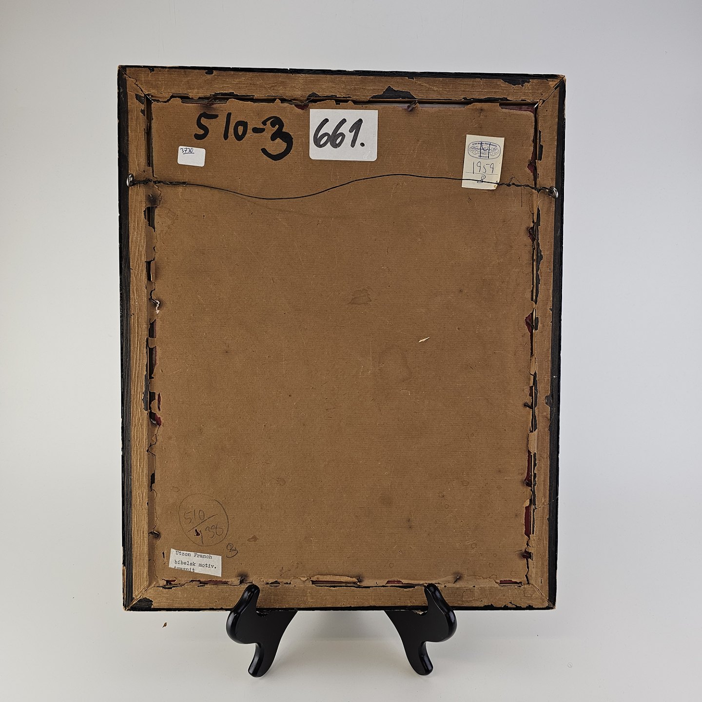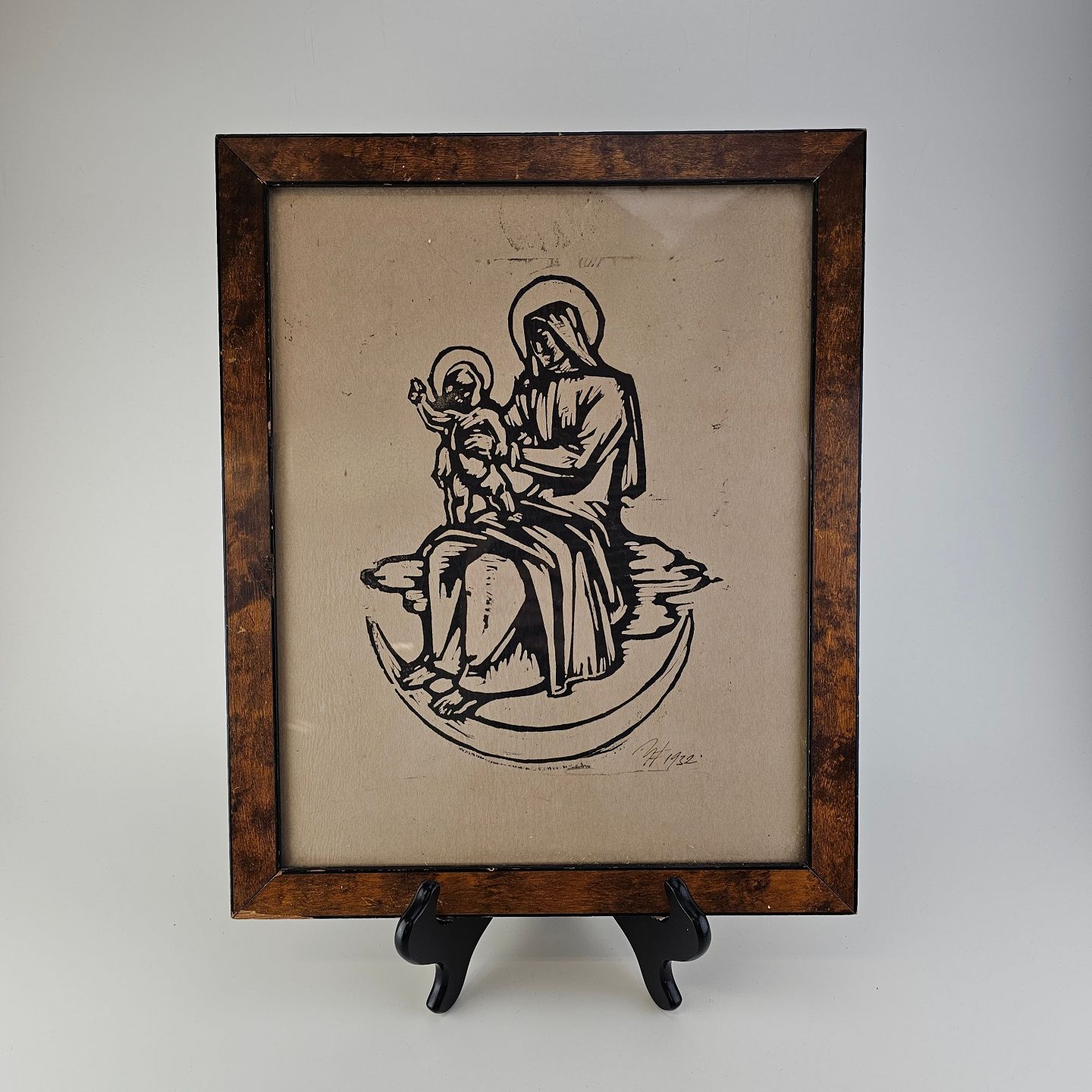Trykt træsnit med bibelsk motiv, monteret i træramme og dateret 1932Kunstner Einar Utzon-Frank (1888-1955), signeret