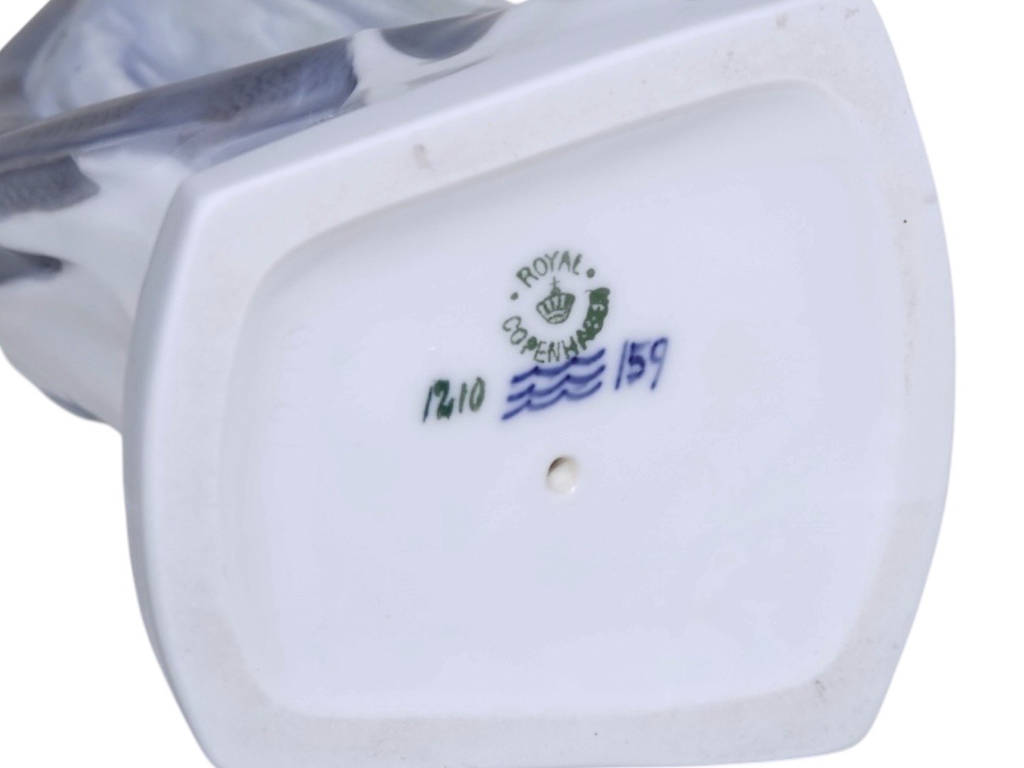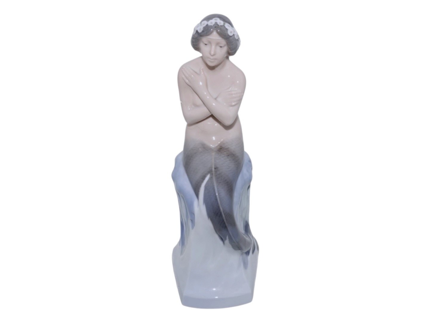 Royal Copenhagen figur af Den Lille Havfrue siddende på is.Af fabriksmærket ses det, at denne er produceret i mellem 1898 og 1923.