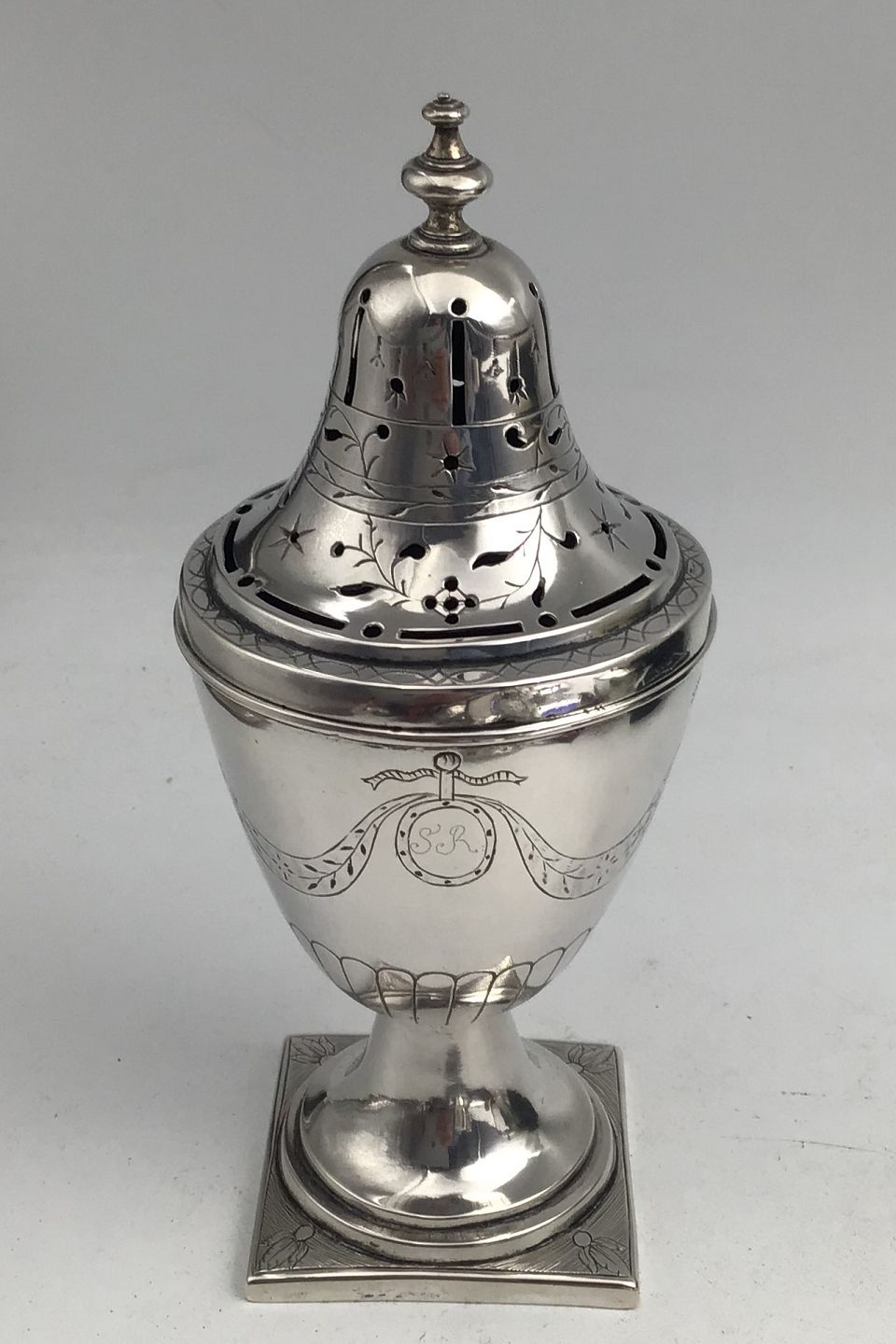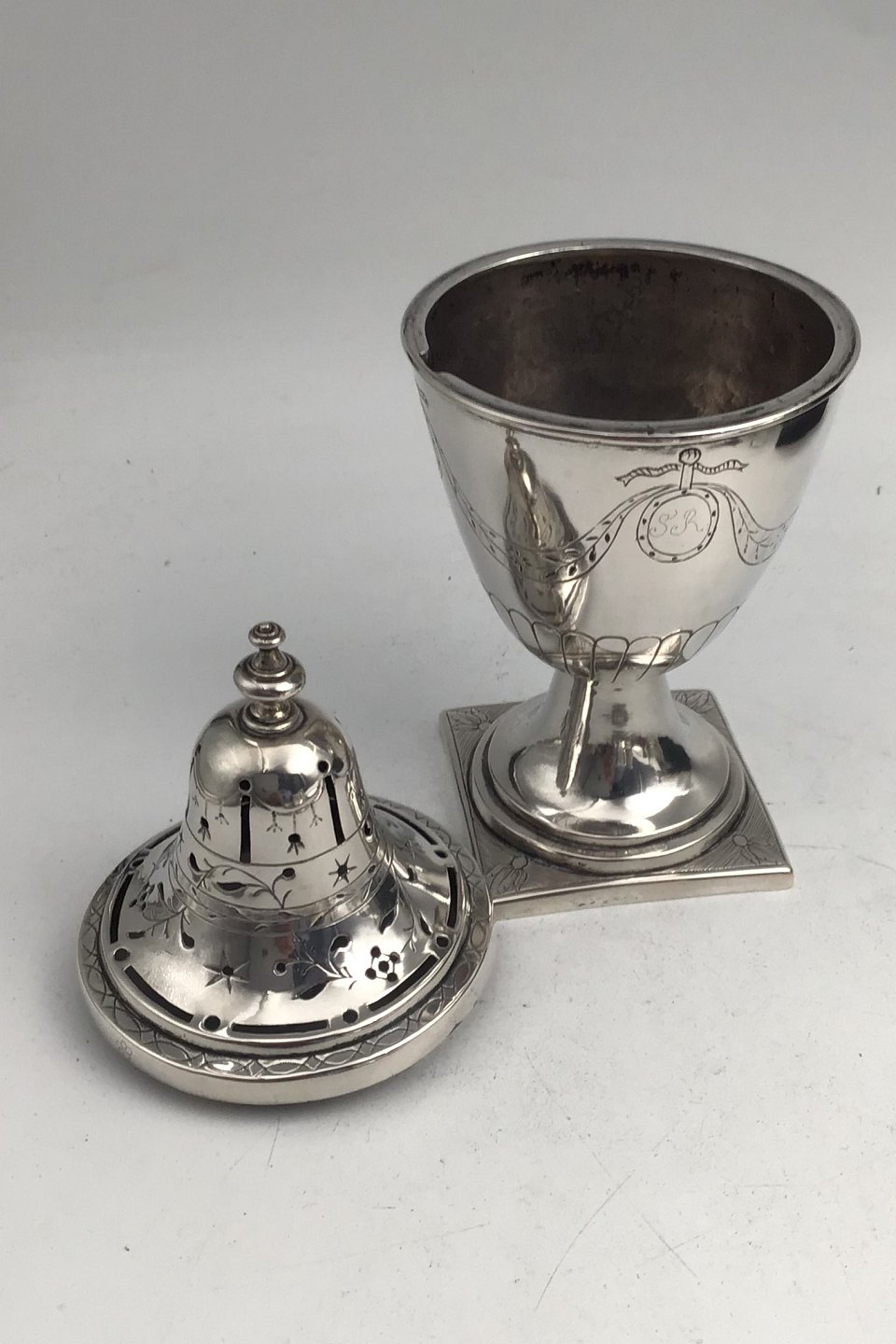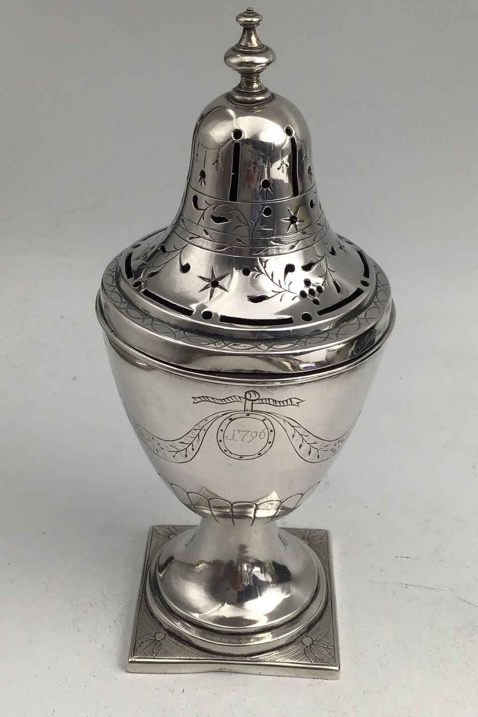 Frederik Janus Borchard Albrecht Creutzberg (1754-1826) Sølv Strødåse Måler H 17 cm (6.70 inch) Diam 7.3 cm (2.87 inch) Vægt 192.5 gr (6.79 oz) (Graveret 1796)