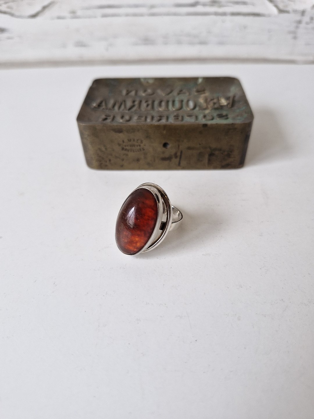N.E.From vintage ring i sterlingsølv med oval ravperleStemplet: N.E.From - Sterling - Denmark