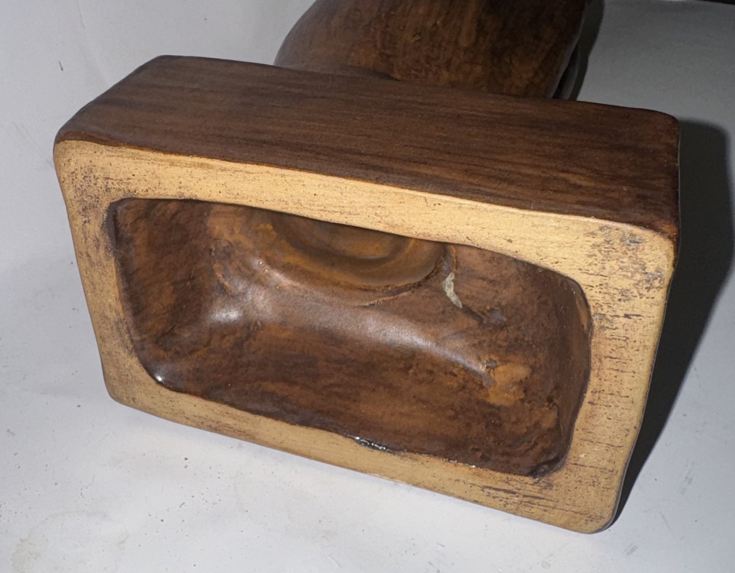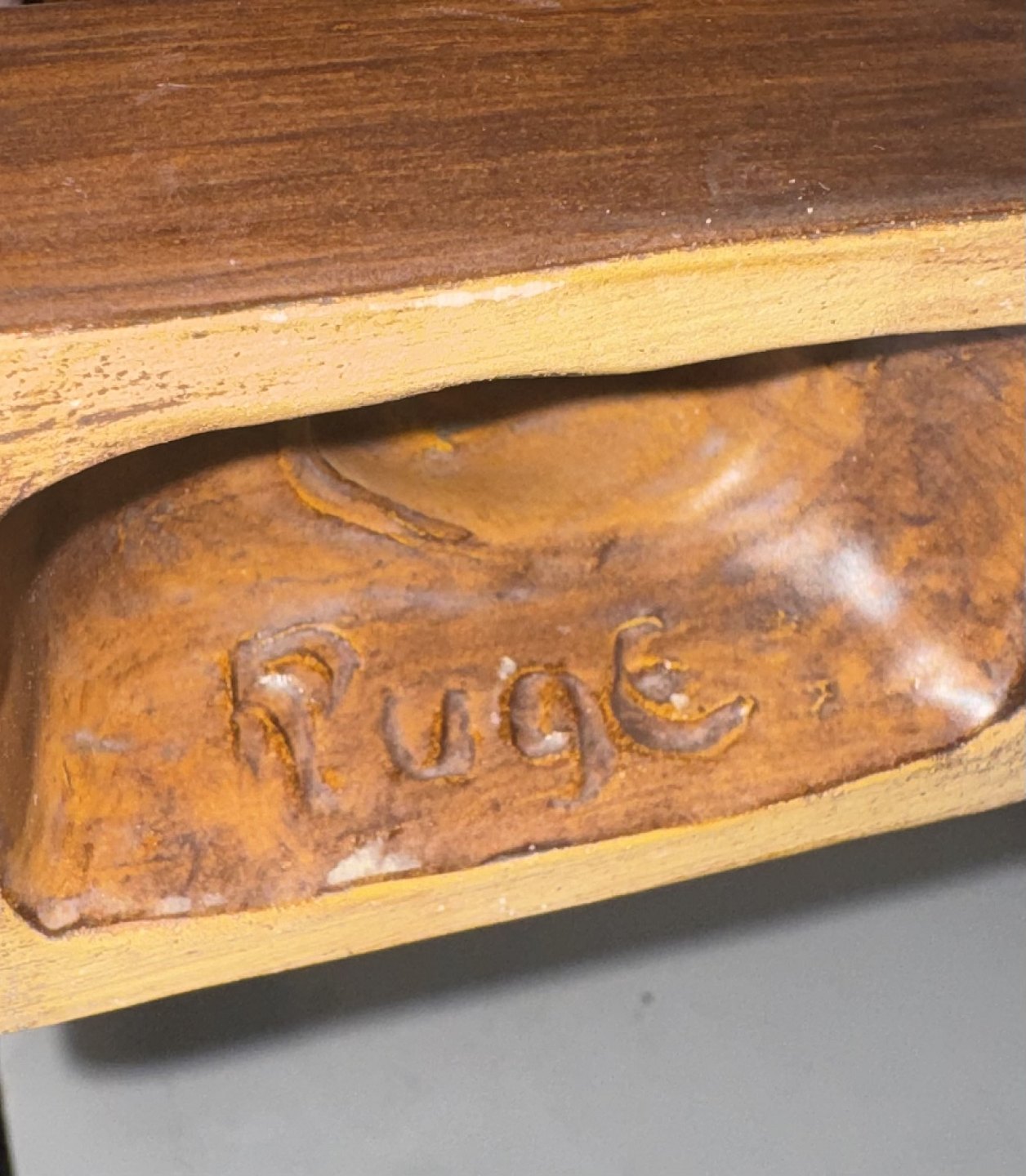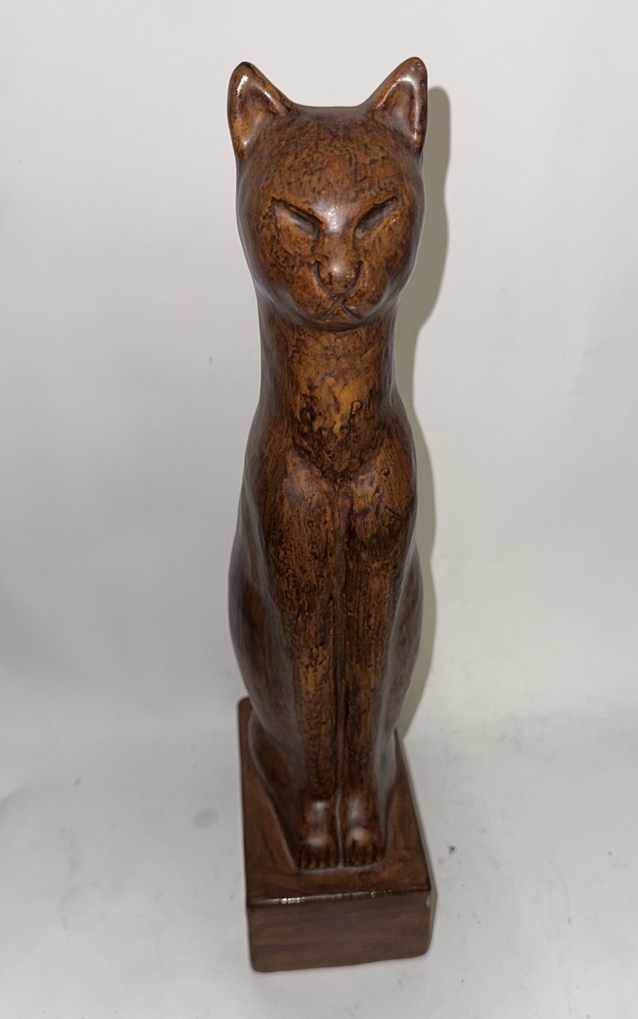 Figur af siddende kat i keramik af Emil Ruge. Dækket af brun glasur. Fremstår i god stand. Signeret af kunstneren på soklens inderside. H. 30 cm