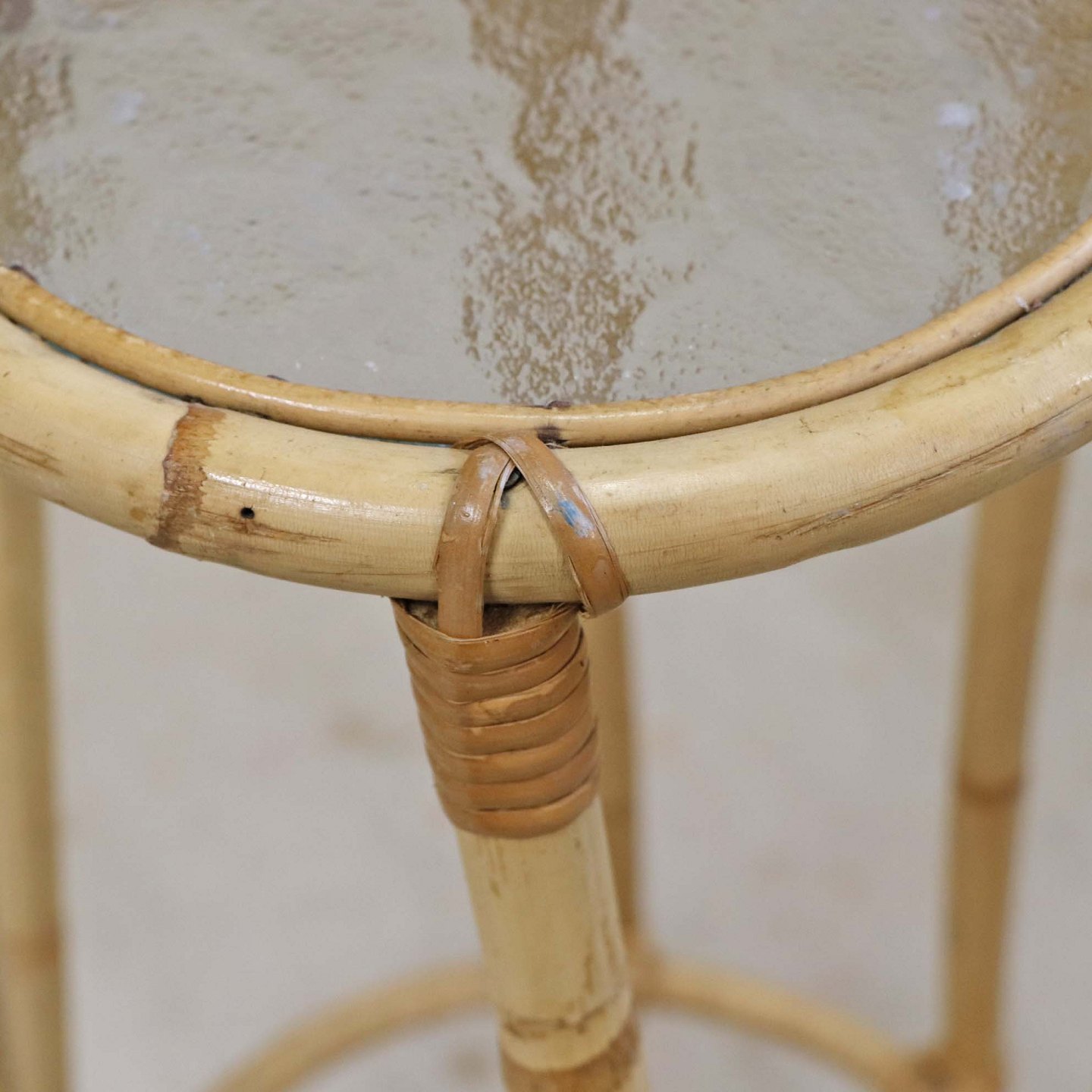 Blomsteropsats i bambus med topplade i glas med struktureret bagside.Producent ukendt