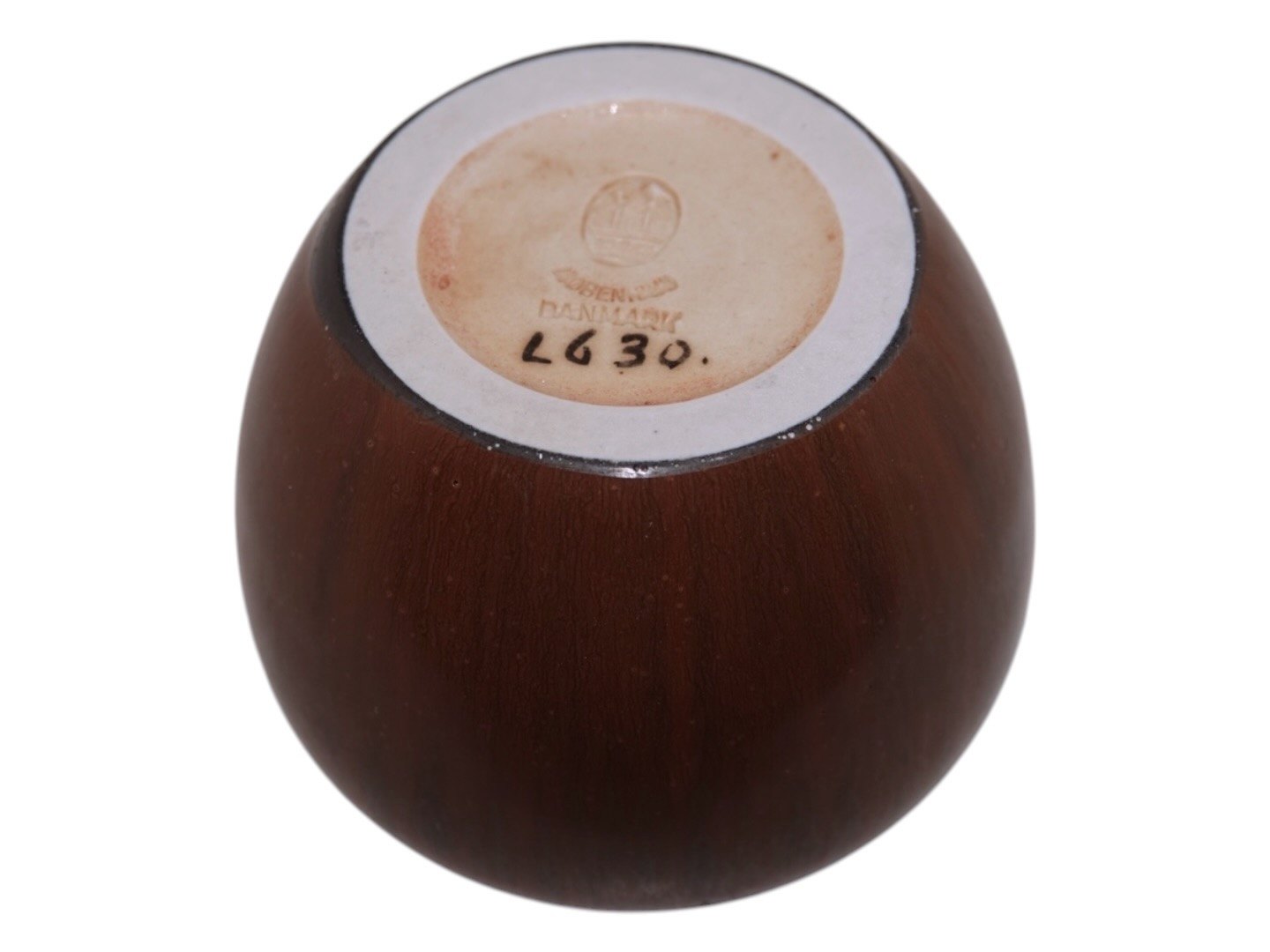 Lille Bing & Grøndahl keramikvase i enkel moderne stil med en brun glasur.Den er mærket med nummer L630.