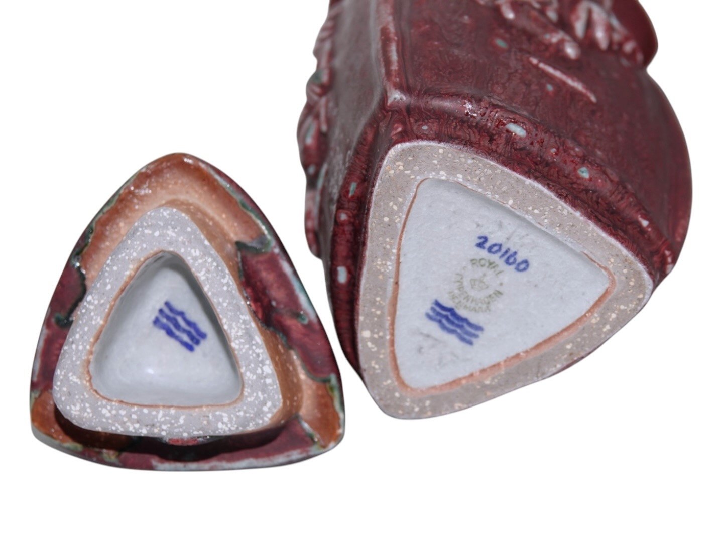 Royal Copenhagen keramik af Bode WillumsenTrekantet vase med låg rød okseblodsglasur
