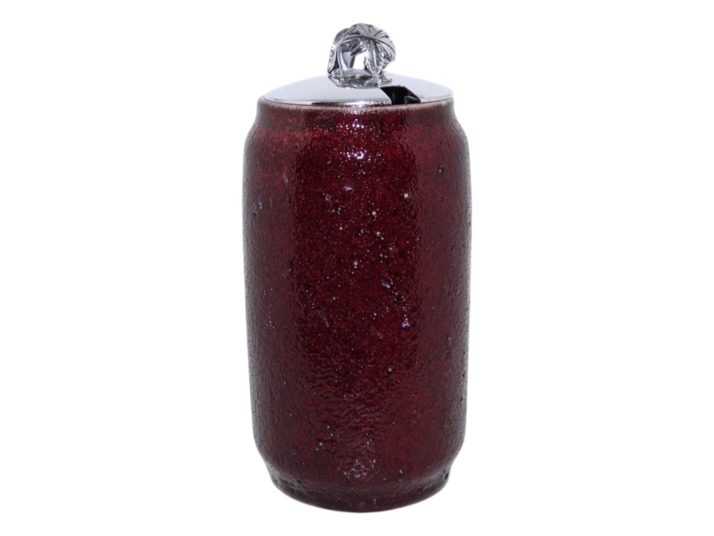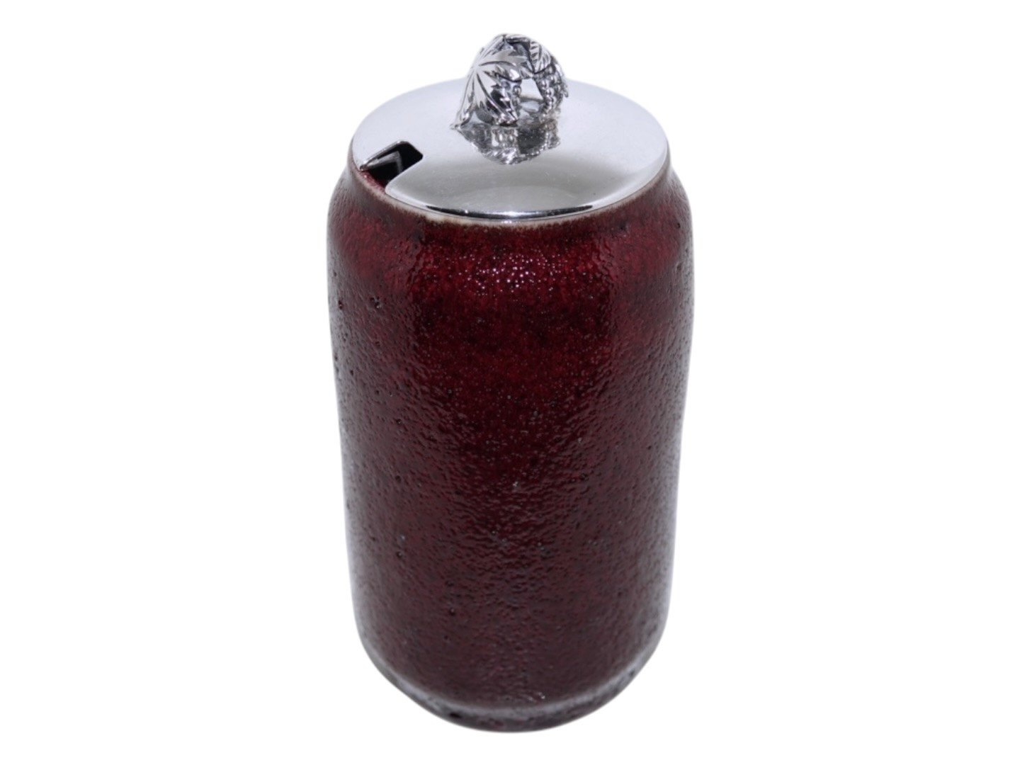 Royal Copenhagen keramik, vase med en flot okseblodsglasur. Oprindeligt har der været et andet låg men nu er der et tretårnet sølvlåg fra sølvsmed Peter Hertz. Låget er dateret 1942.