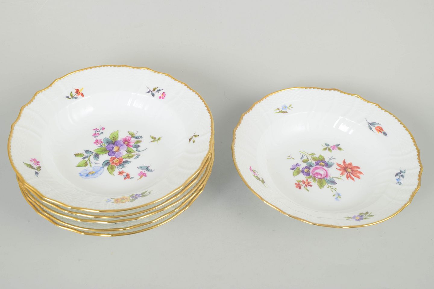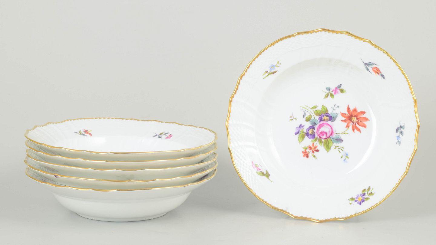 Royal Copenhagen saksisk blomst, sæt af seks dybe tallerkner.Beschreibung: