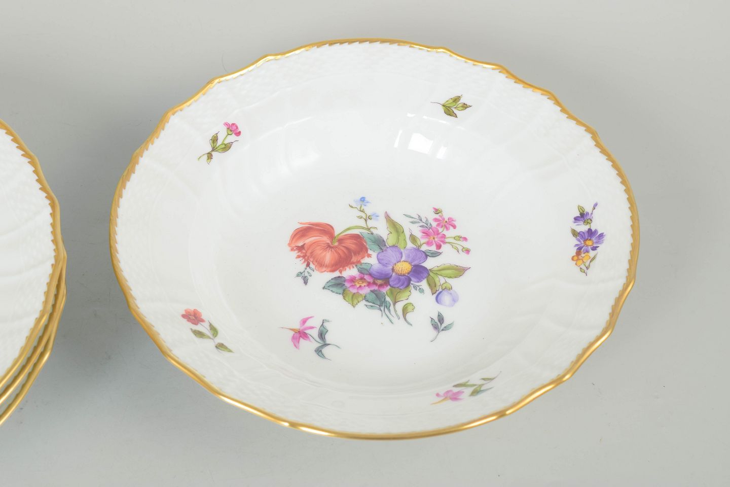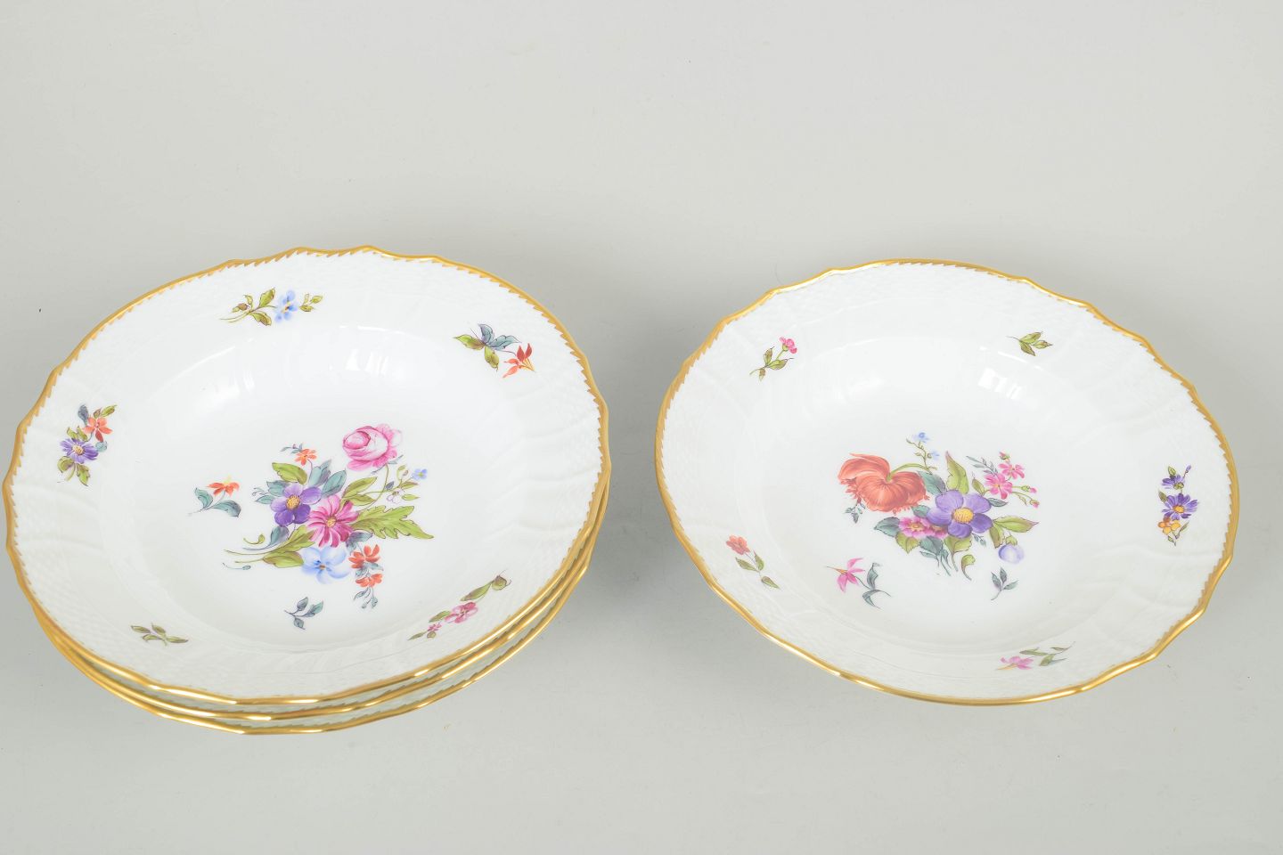 Royal Copenhagen saksisk blomst, sæt af fire dybe tallerkner.Beschreibung: