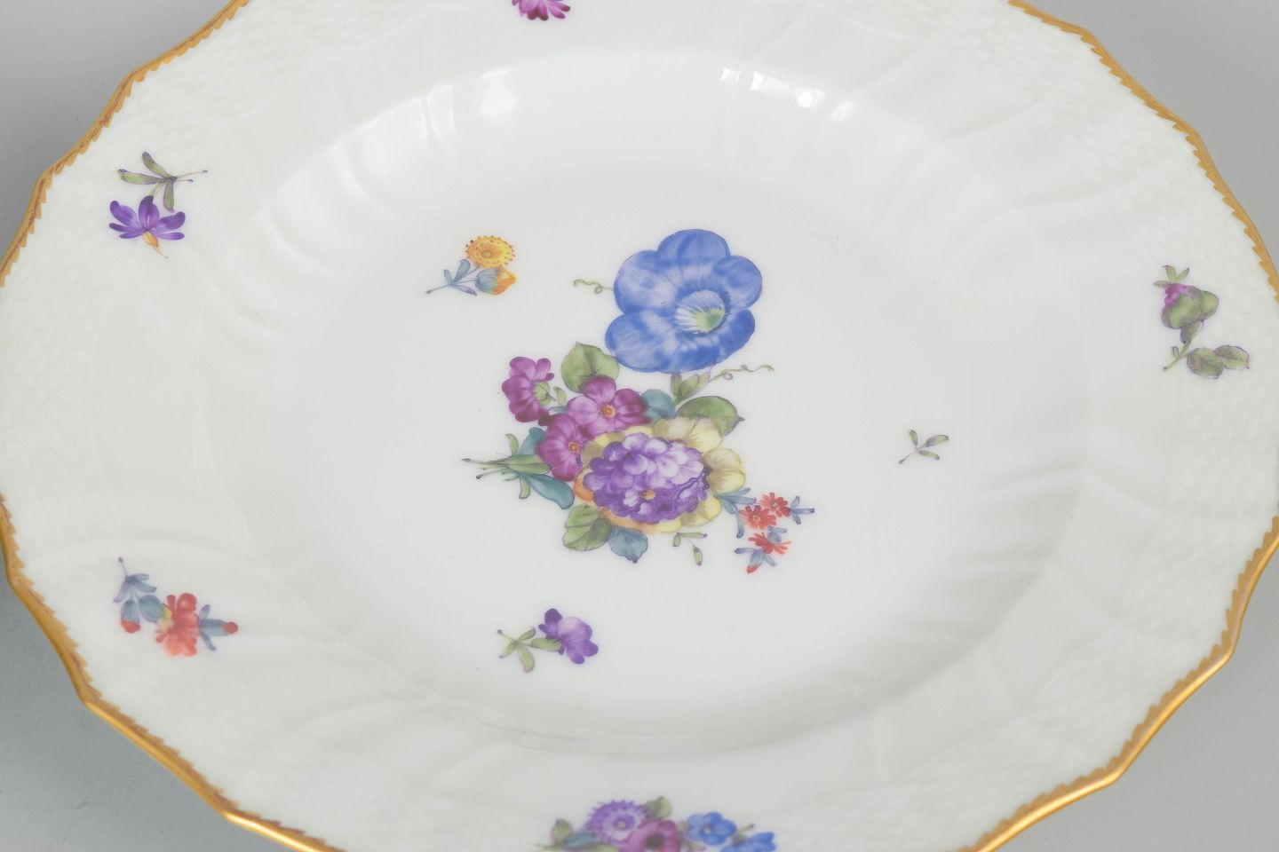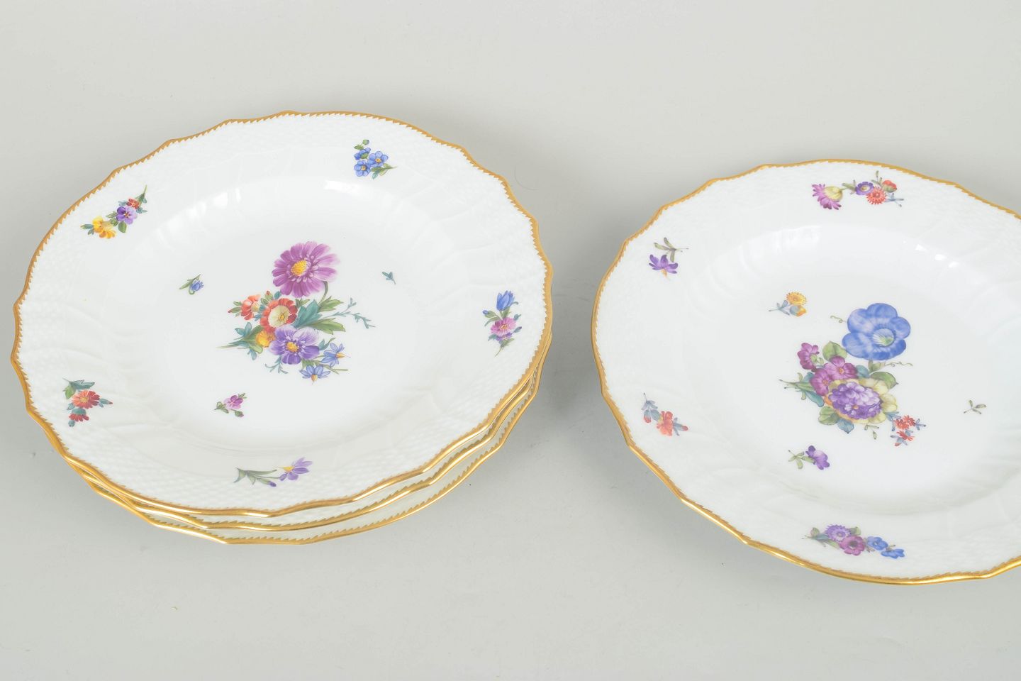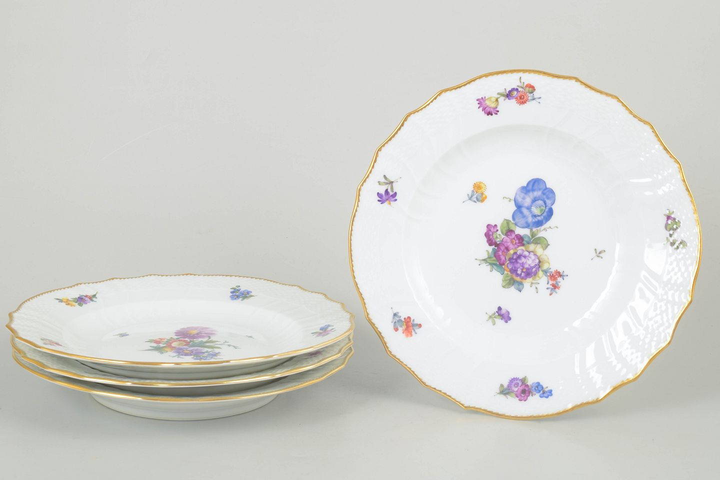 Royal Copenhagen saksisk blomst, sæt af fire middagstallerkner.Beschreibung:
