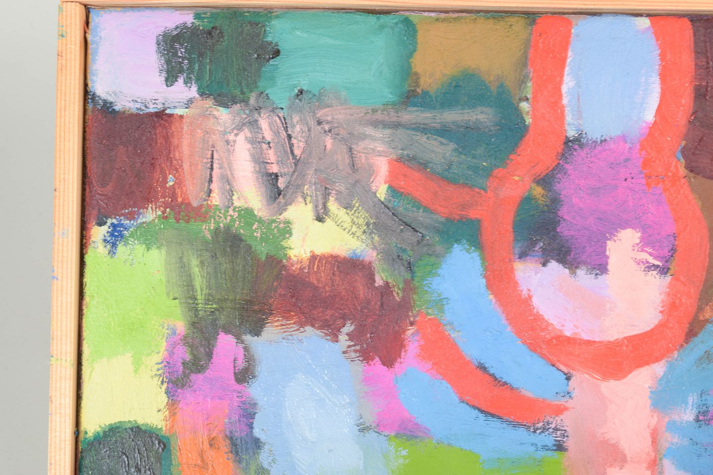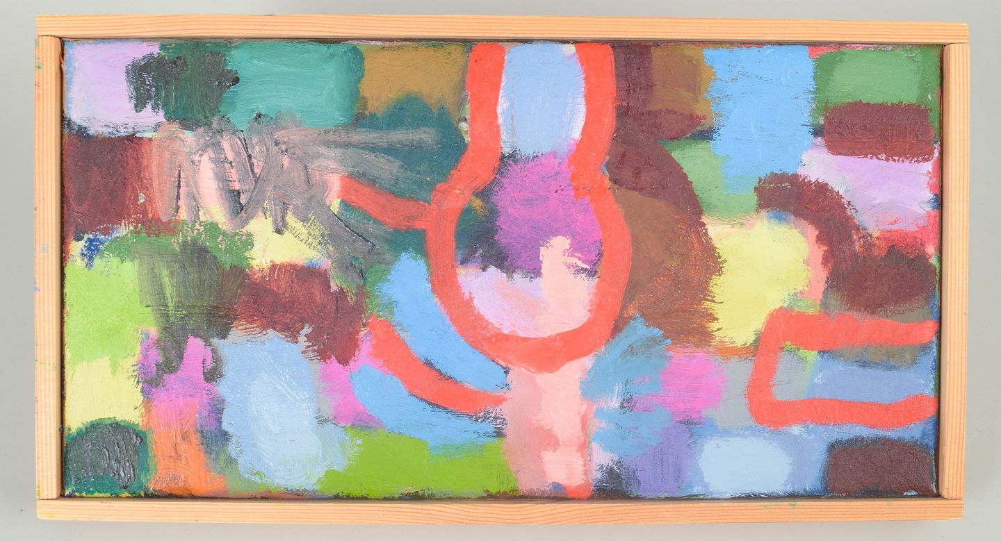 Magnus Wijkström, oliemaleri på lærred, listet svensk billedkunstner.Abstrakt komposition med geometriske former og kraftfulde farvefelter udført i olie på lærred, usigneret.