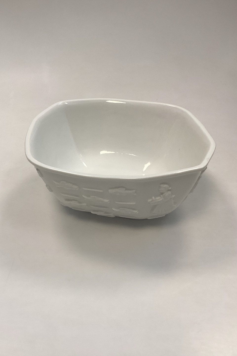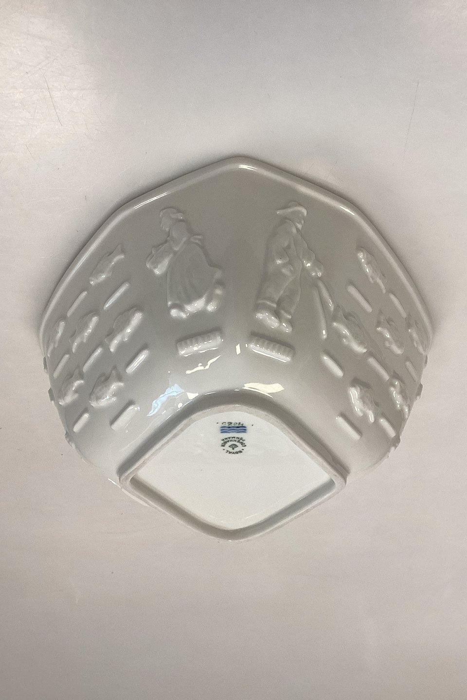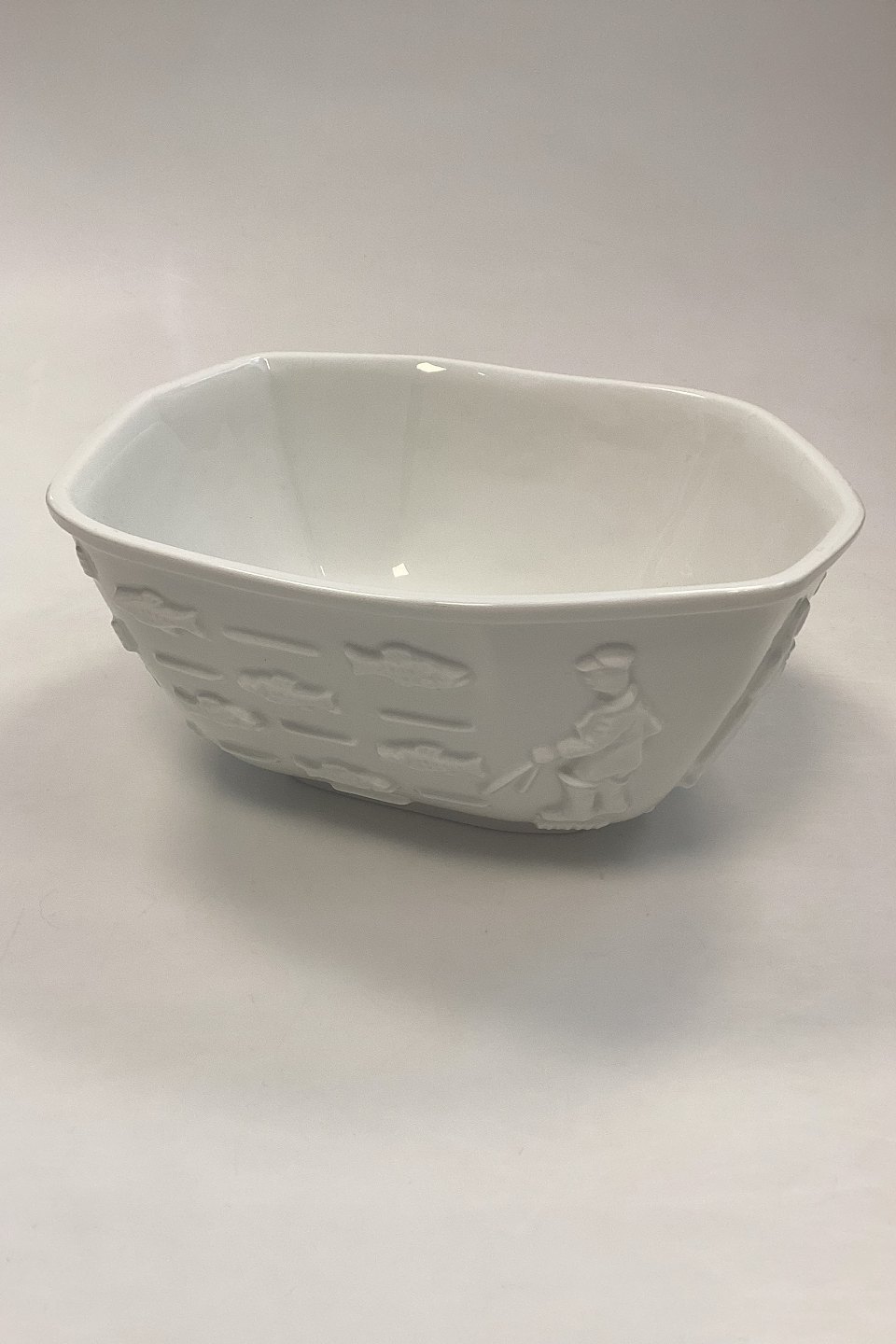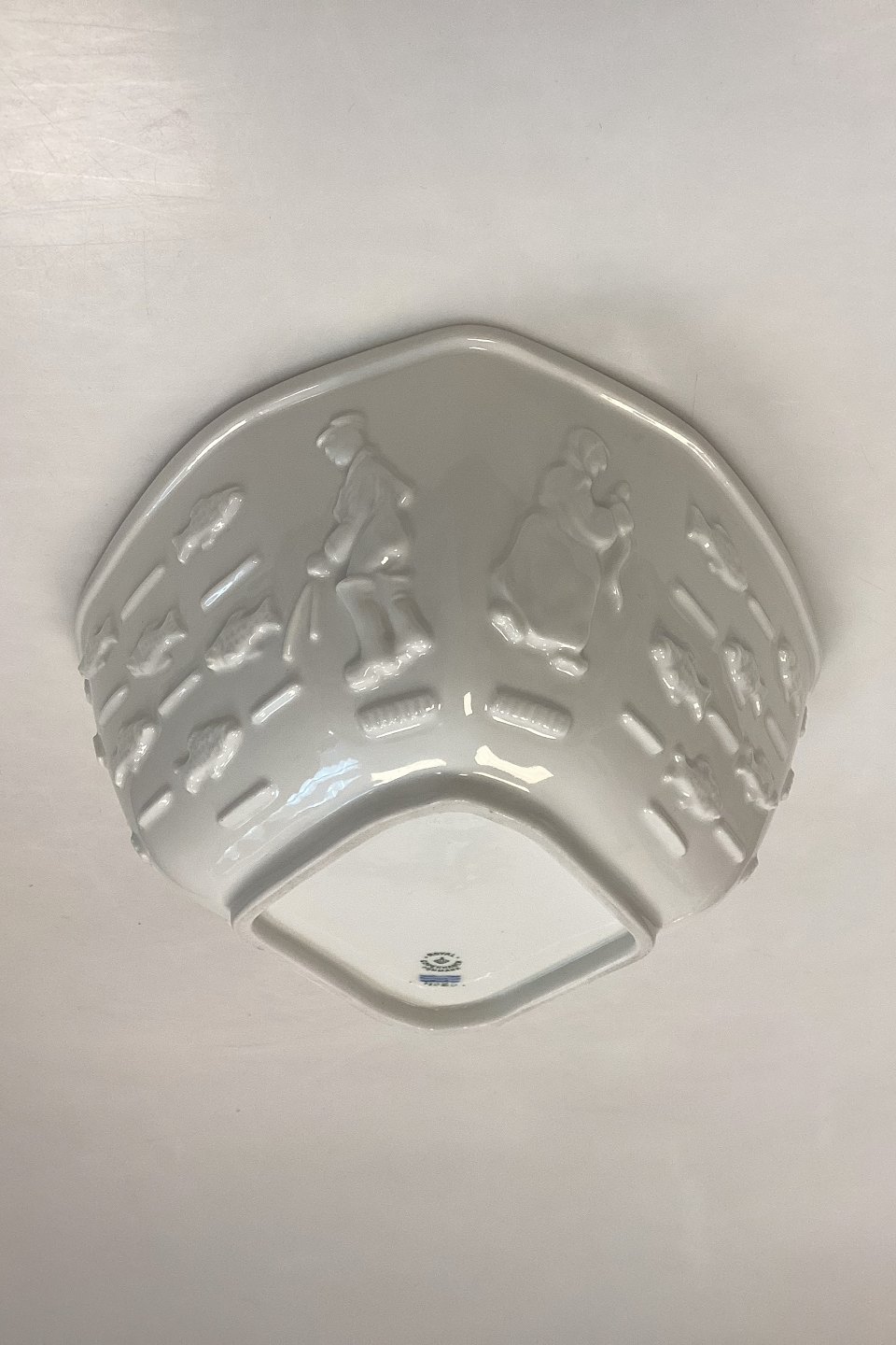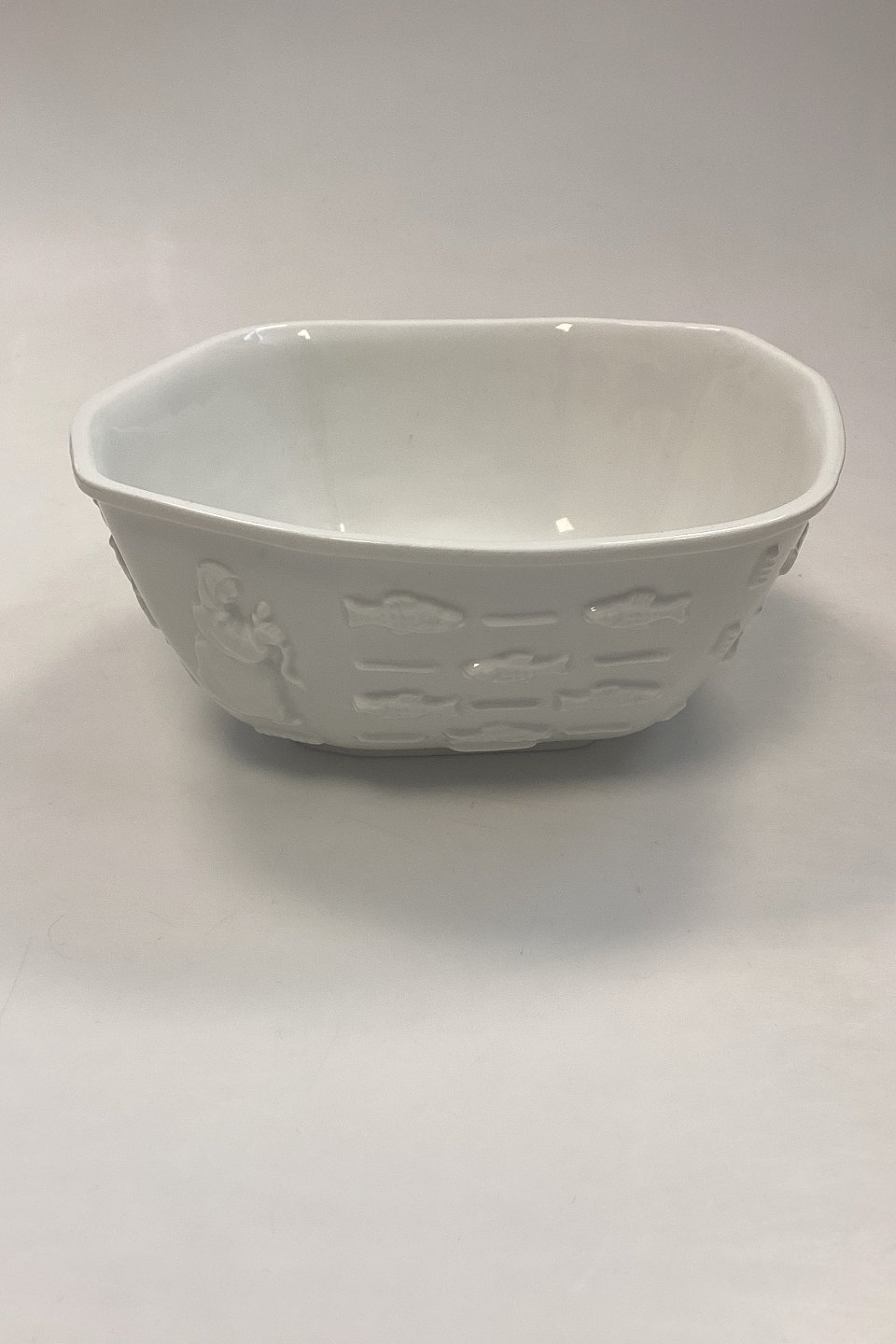 Royal Copenhagen Blanc de Chine Skål af Bode Willumsen No. 4085Med motiver af fisk og fiskere.