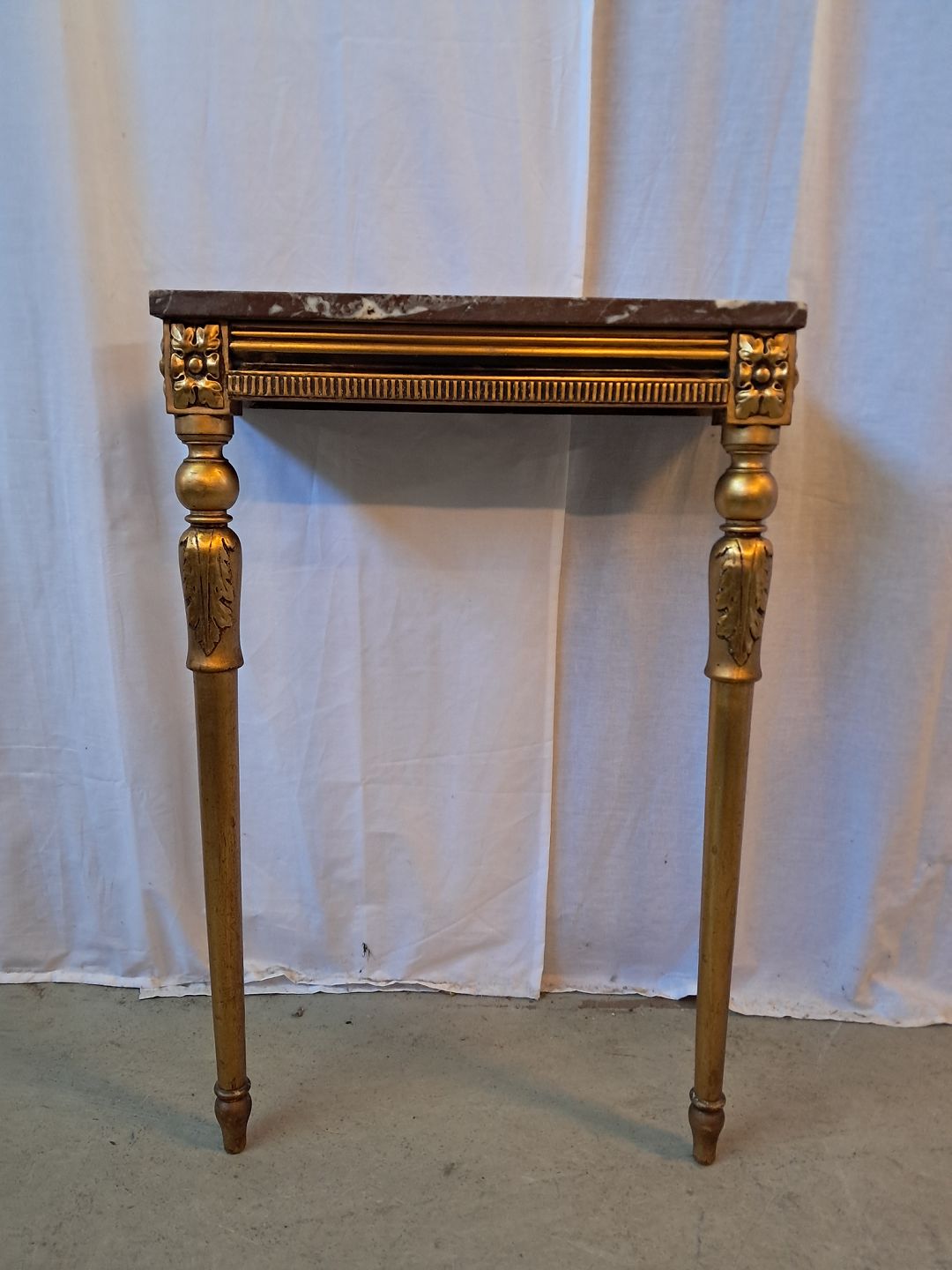 Guldmalet konsol med marmorplade, fra 1920erne.Det har brugsspor.