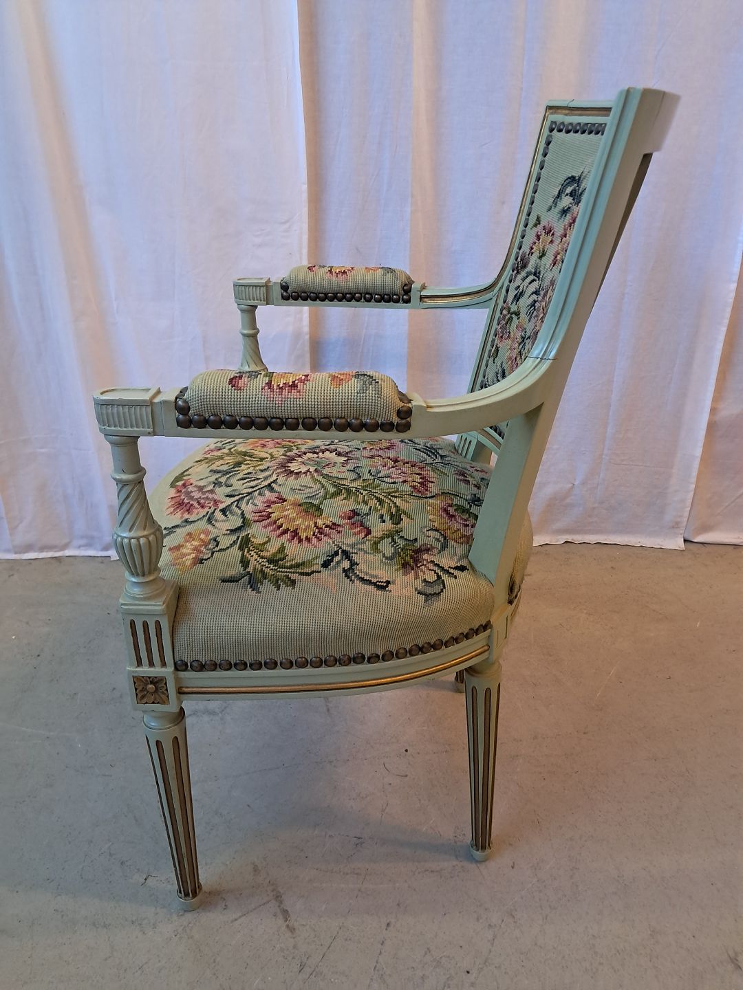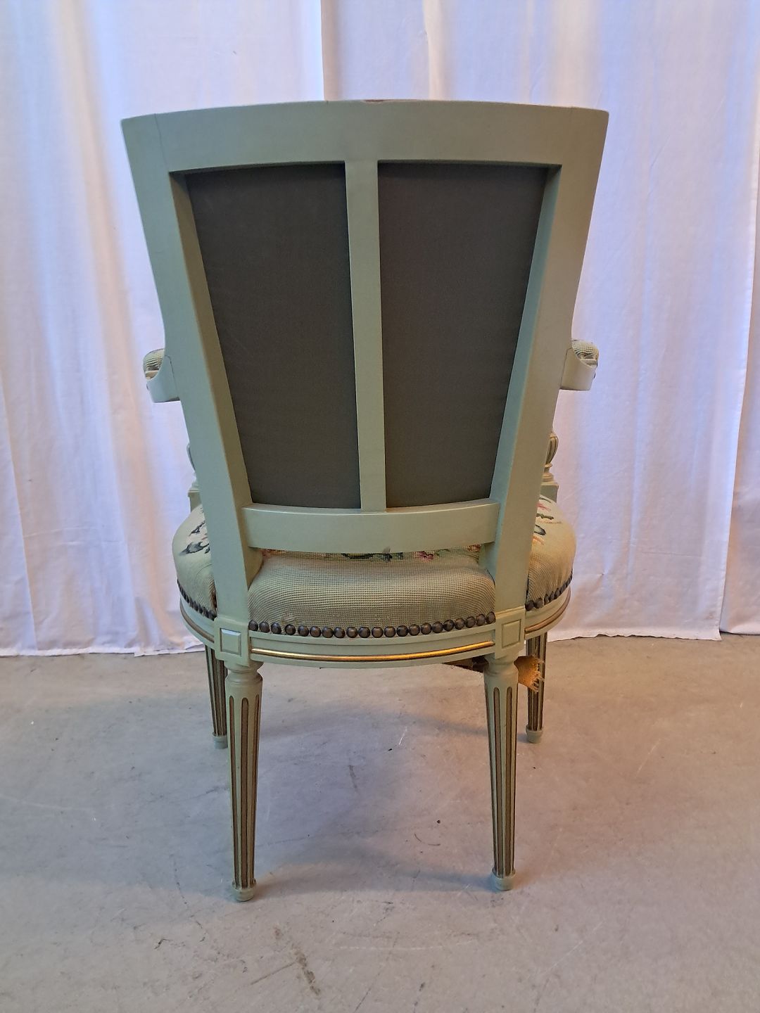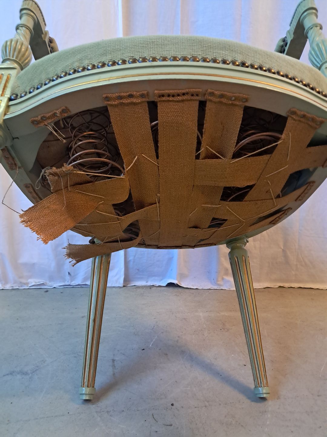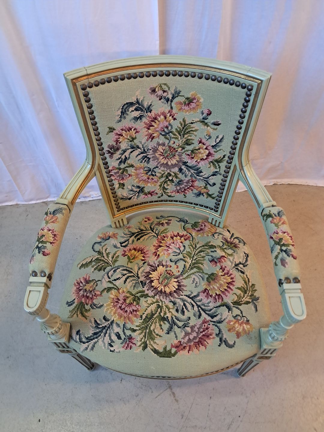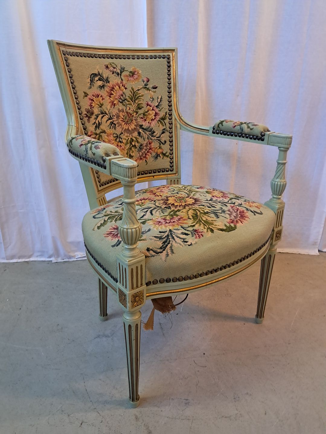 Malet rokokostol, fra 1950erne.Den har brugsspor og defekt bund. (se foto)