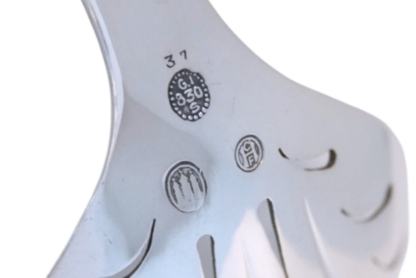 Georg Jensen sølv, tidlig ornamental jordbærske.Denne er produceret før 1932.