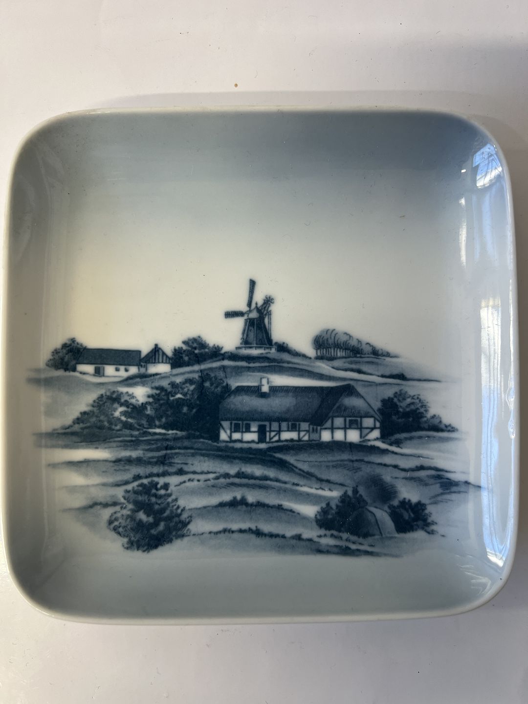 Bing & Grøndahl Firkantet asiet (oprindeligt askebæger) Dansk Landskab.Dekorationsnummer 9805/455.