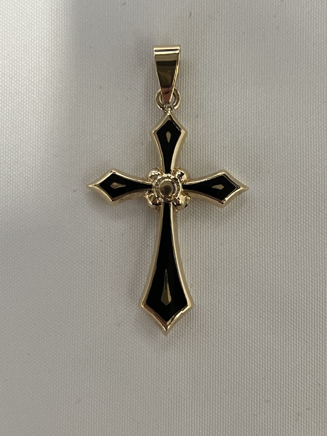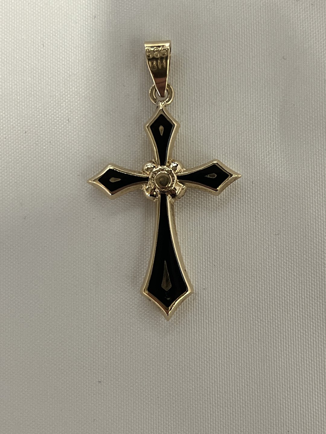 Kors vedhæng med sort emalje i 14 karat