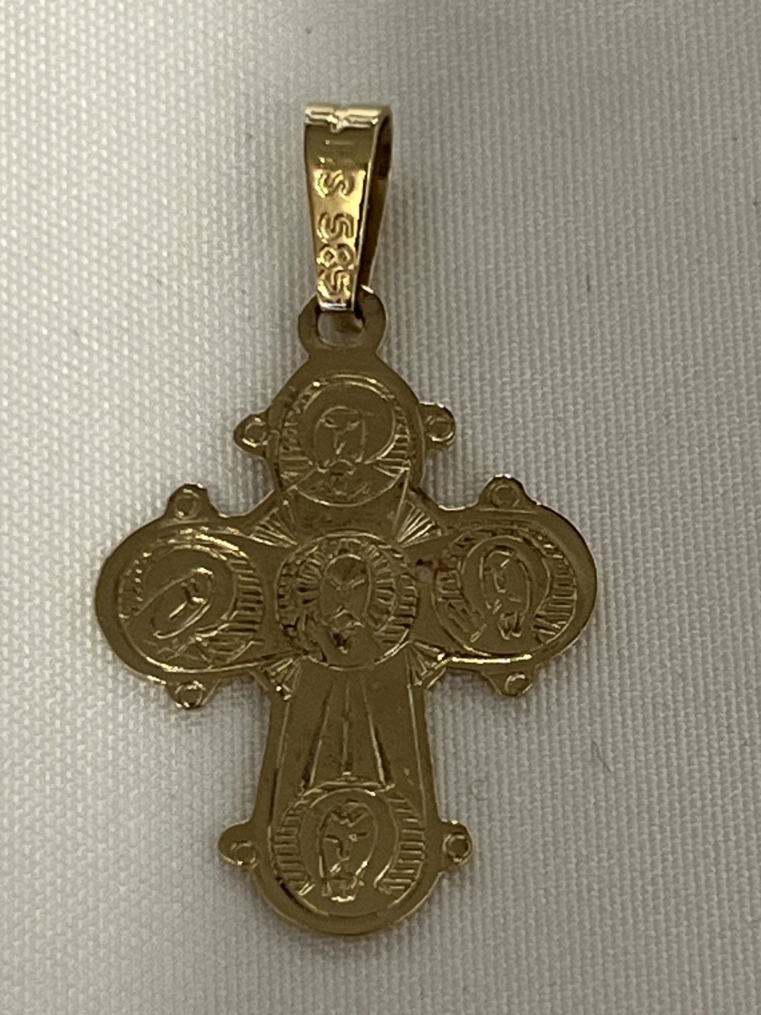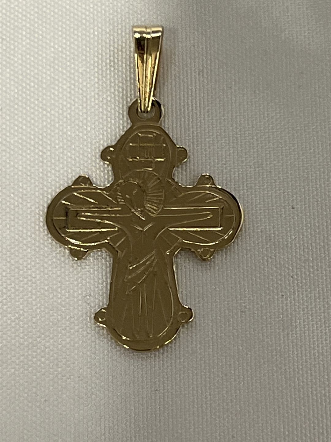 Klassisk Dagmarkors med den lidende Kristus på forsiden, og de 5 store på bagsiden. Dagmarkorset er et traditionelt smykke, der ofte gives som dåbs- eller konfirmationsgave.Højde med øsken: 2,9 cm.