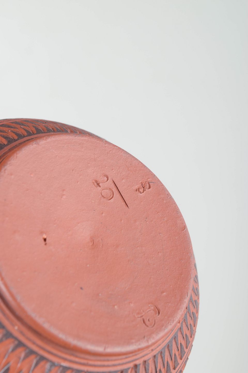 Dansk keramisk produktion i 1930’erne var præget af en stærk håndværkstradition med fokus på form og ornamentik. Terrakotta blev ofte anvendt til dekorative genstande, hvor indridset dekoration og gentagende mønstre var inspireret af både klassiske og tidstypiske stilretninger. Mange værksteder arbejdede i mindre serier, og genstandene fremstår i dag som karakteristiske eksempler på mellemkrigstidens design.