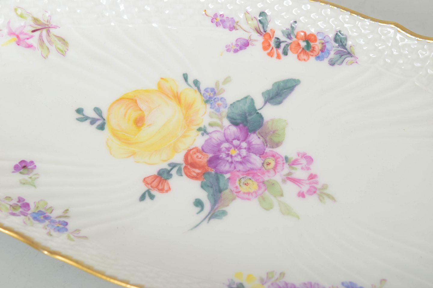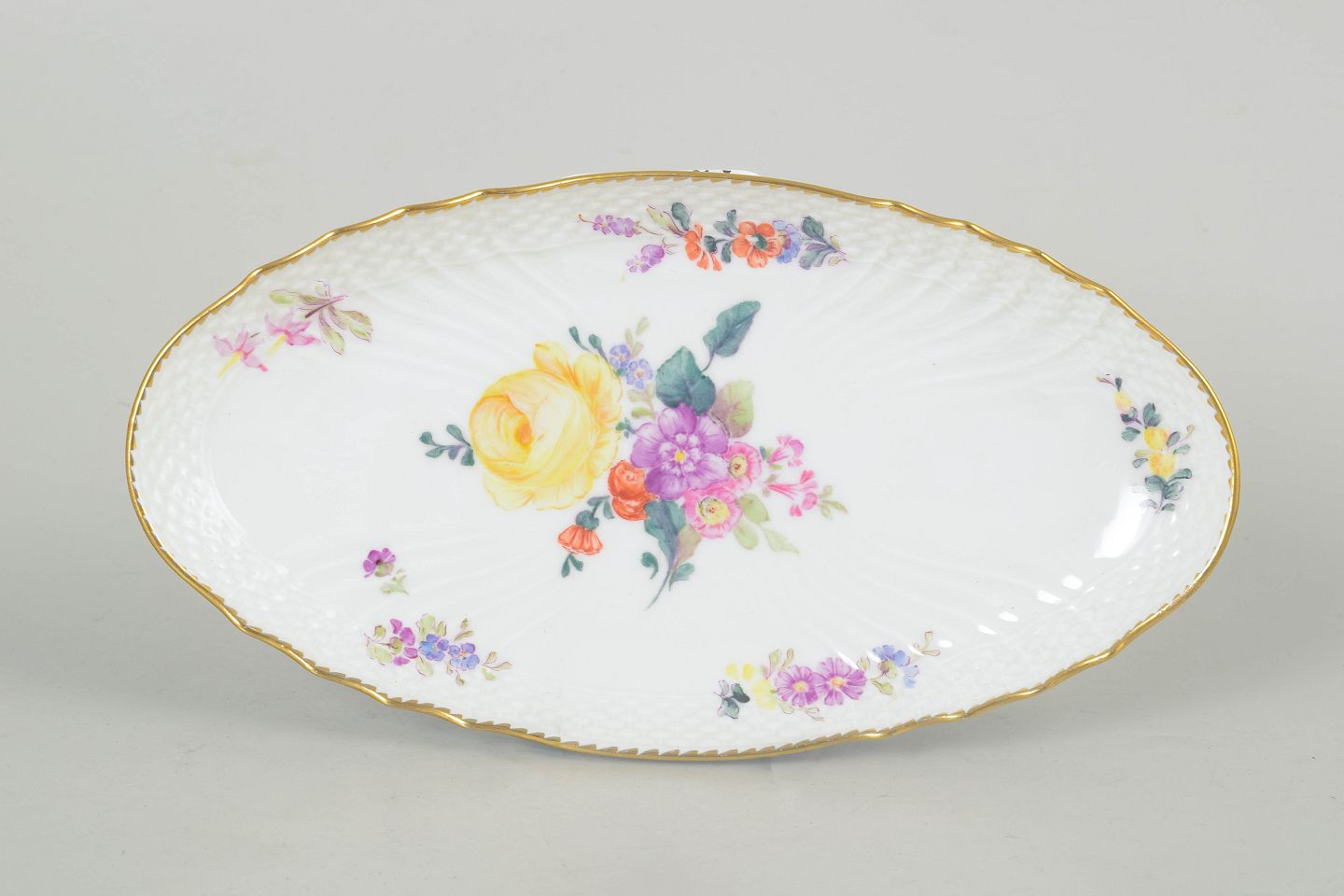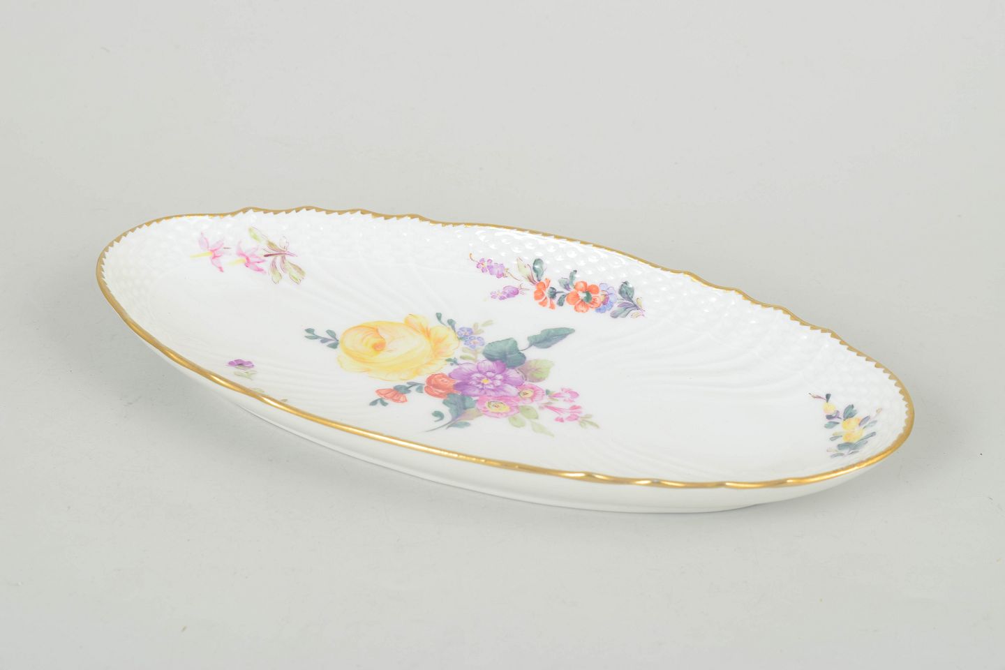 Royal Copenhagen saksisk blomst, ovalt fad.Beschreibung: