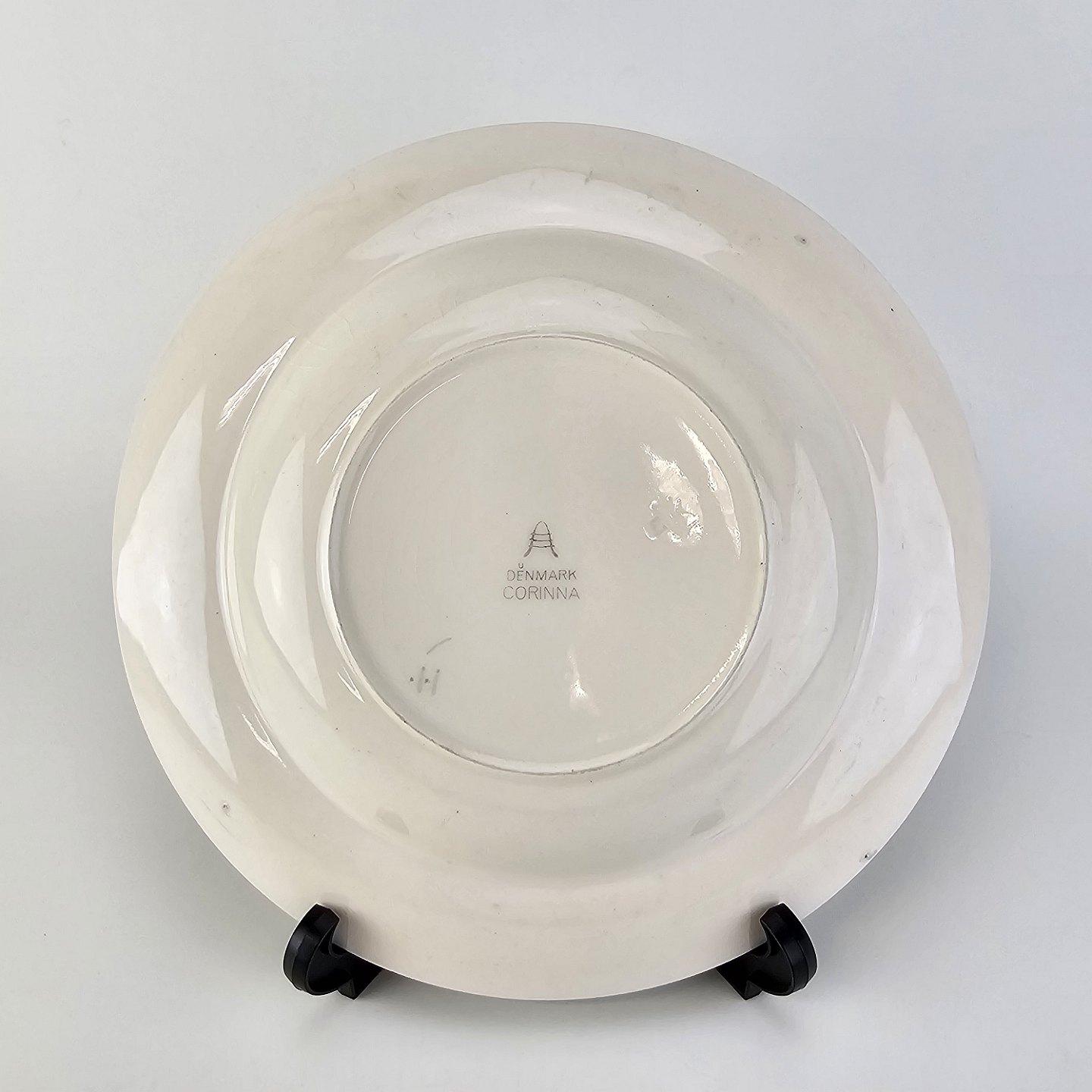 Dyb tallerken i fajance fra stellet Corinna fremstillet i perioden 1937-1966